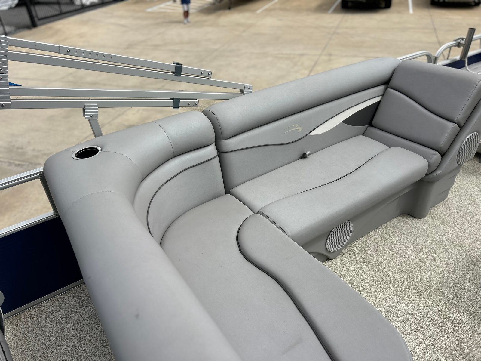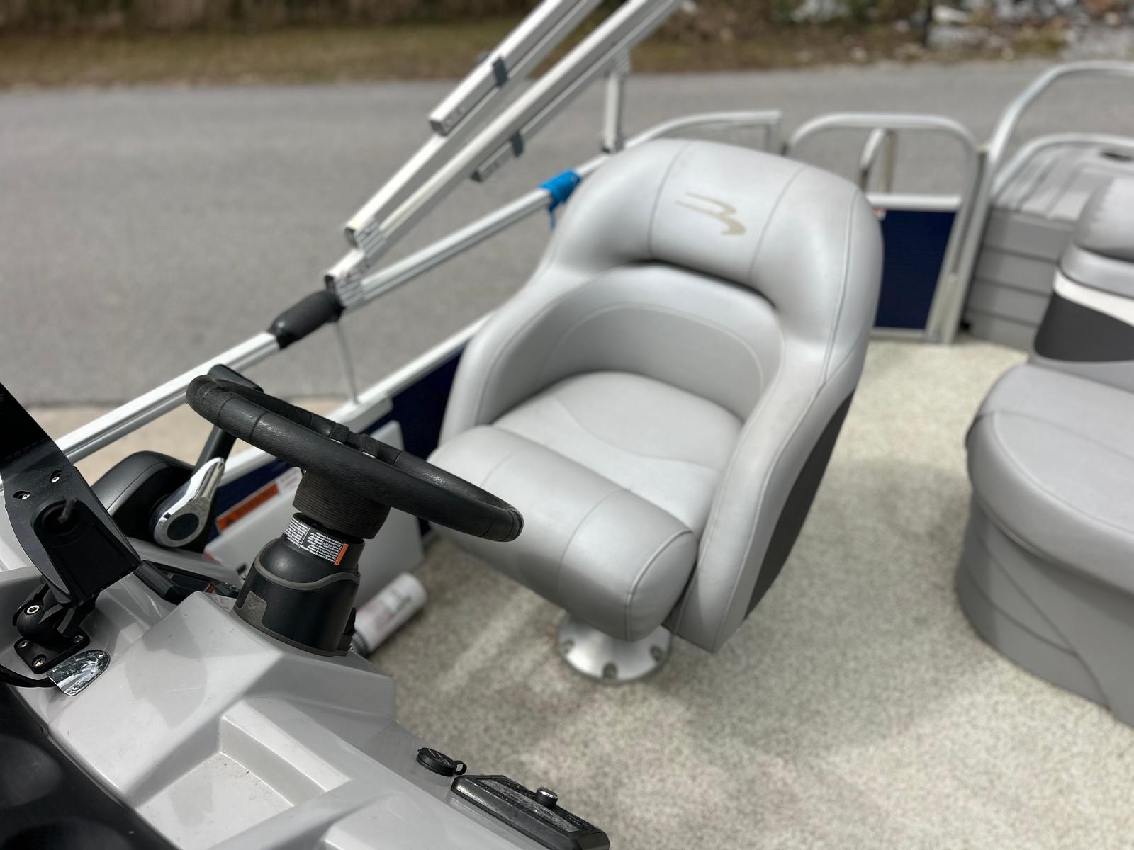 The Bennington 188 SLV is thoughtfully designed with features that enhance both comfort and convenience. The spacious deck layout allows for easy movement and plenty of seating, making it perfect for socializing, sunbathing, or simply relaxing with loved ones. The pontoon’s sturdy construction ensures a stable and secure ride, even when the water gets a little choppy. The 18-foot length strikes a great balance between portability and passenger capacity, giving you the flexibility to host small gatherings or enjoy peaceful solo excursions.This used pontoon boat also benefits from Bennington’s reputation for quality craftsmanship and attention to detail. Every aspect of the 188 SLV is designed to maximize your enjoyment on the water, from the comfortable seating arrangements to the intuitive controls at the helm. The durable materials and stylish finishes ensure that your boat will look great and perform well for years to come.