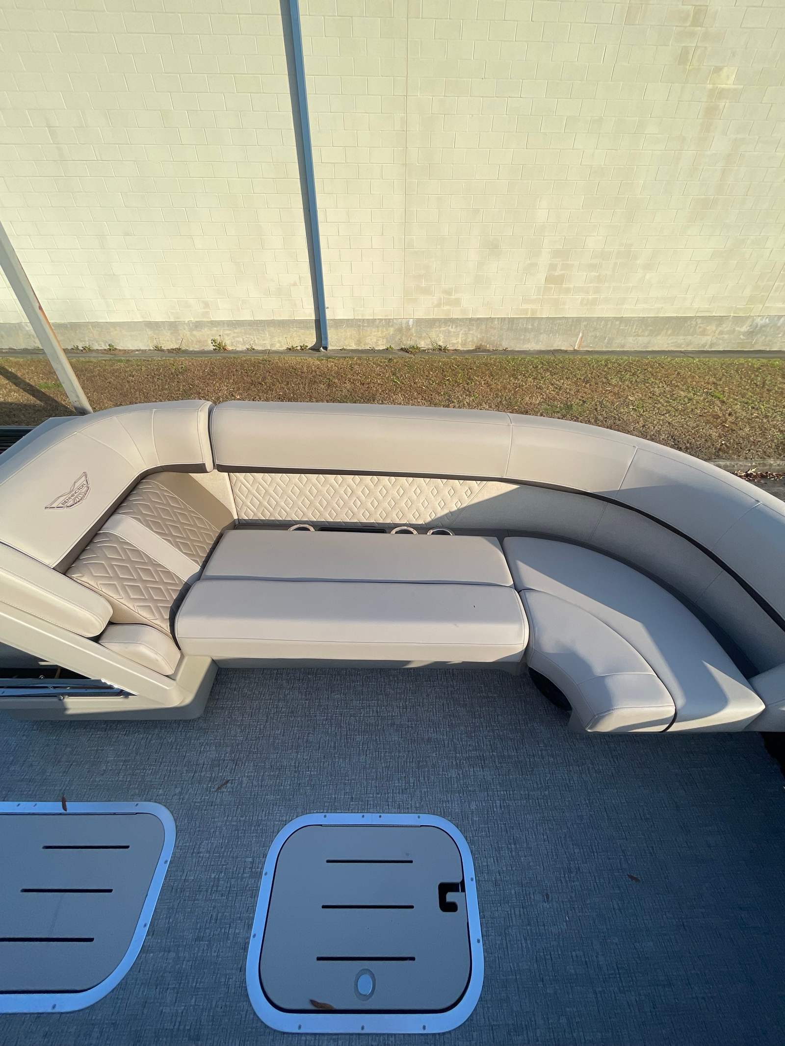 The Bennington 24 MSB SPS Pontoon is loaded with premium features that enhance both its aesthetics and functionality. The underwater lighting creates a captivating ambiance for evening cruises, while the toekick lights (2-62") add a touch of elegance and safety to the deck area. The elevated console with pocket Dolce provides a commanding view and easy access to controls, ensuring a comfortable and intuitive driving experience.Inside, the base furniture from the M Series offers plush seating and ample space for relaxation, complemented by Zebrawood Matte Beige accents and Espresso Simtex interior accents for a sophisticated, modern look. The canvas in Midnight Black not only adds to the boat’s visual appeal but also provides protection from the elements. For added convenience, the Benny Quick Fender Latch Kit in black (quantity 4) allows for fast and secure attachment of fenders, making docking and undocking a breeze.