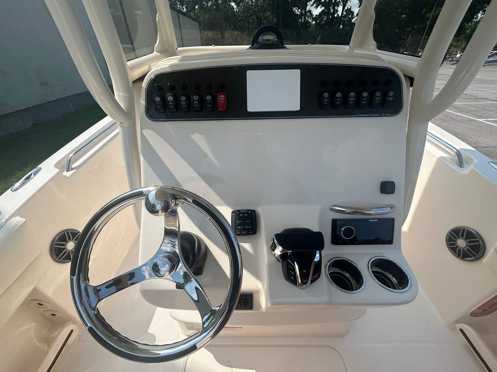 Powering the Fisherman 216 is a single Yamaha F250 engine, delivering a robust 250 horsepower. This engine is renowned for its reliability, fuel efficiency, and smooth operation, ensuring that every outing is both exhilarating and worry-free. The SGL YAM F250 IDES 215 configuration provides optimal performance, whether you’re cruising along the coastline, heading out for a day of fishing, or enjoying water sports with friends and family. With this powerful engine, you’ll experience quick acceleration, impressive top speeds, and responsive handling that make navigating any waterway a breeze.