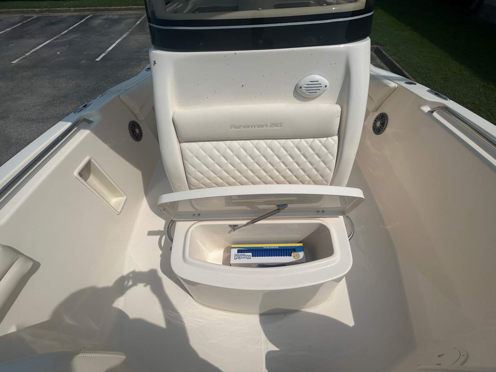 The Grady-White Fisherman 216 comes equipped with a range of special features designed to enhance your boating experience. The Handi Head (PH with Deck Pump Out) offers convenience and comfort for longer trips, making it easy to stay out on the water all day. The Deluxe Leanbar with Raw Water Livewell is perfect for anglers who want to keep their catch fresh and accessible, while the installation of the Garmin 1243 XSV and thru-hull transducer ensures you have state-of-the-art navigation and fish-finding capabilities at your fingertips. These features, combined with the boat’s spacious layout and thoughtful design, make the Fisherman 216 a top choice for anyone seeking a Center Console boat for sale.