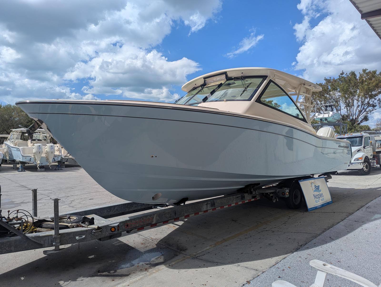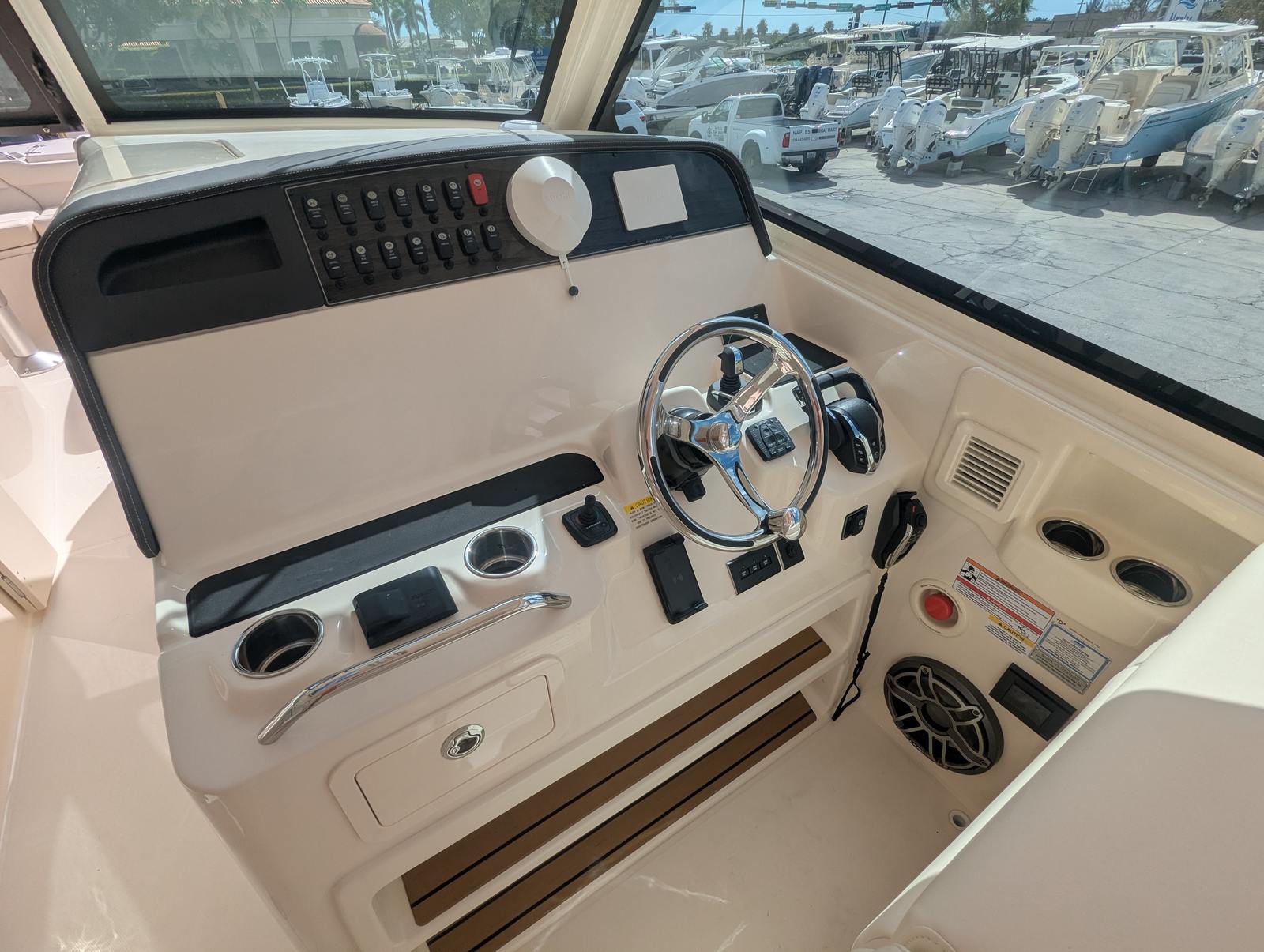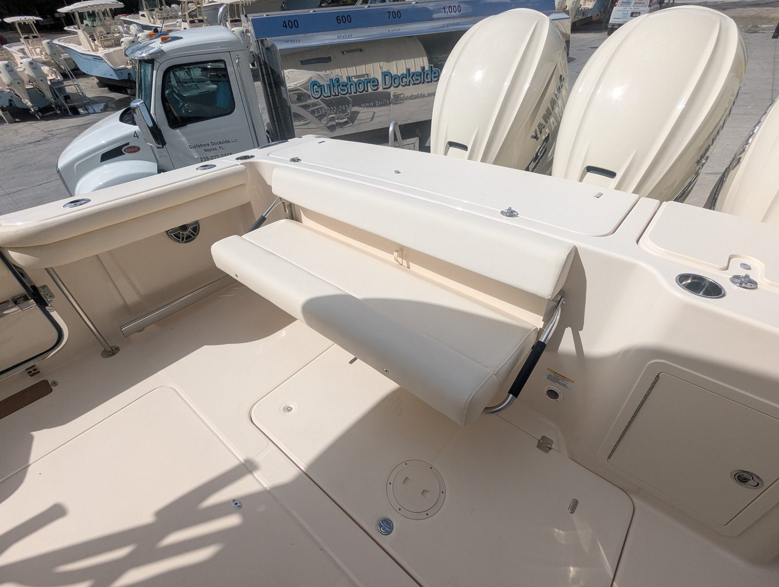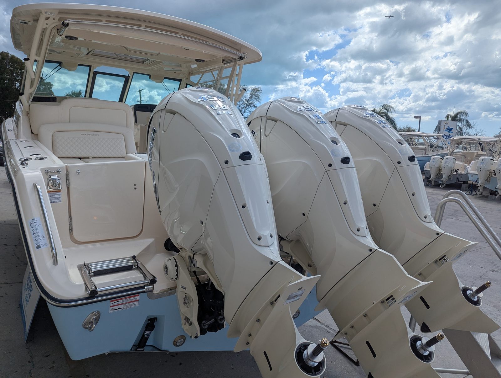 The Grady-White Freedom 375 is designed with practicality in mind, making ownership as enjoyable as it is rewarding. The advanced Yamaha Wireless Joystick system takes the stress out of docking, allowing you to navigate tight spaces with confidence and ease. The triple Yamaha XF450 engines provide not only impressive power but also reliable performance for long days on the water.The included Ivory Bow Shade, Top Aft Curtain, Top Drop Curtain, and Bow Cover offer flexible options for protecting your crew from the sun and weather, ensuring comfort no matter the conditions. The spacious layout and thoughtful storage solutions make it easy to bring along all your gear, whether you are planning a day of fishing, watersports, or simply relaxing at anchor.