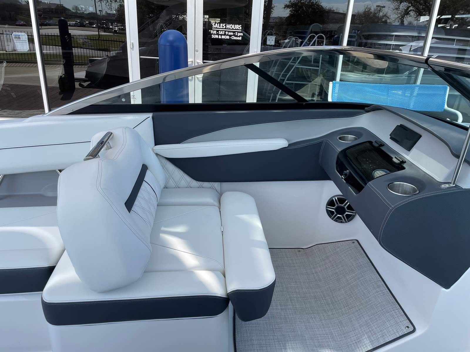 The 2026 Regal LS4 is a stunning 24.42-foot Bowrider that combines contemporary design with practical features, making it a standout in its class. With its sleek lines, modern profile, and attention-grabbing Tahiti Beach White hull color, this boat is sure to turn heads at any marina or on any lake. The bold Black boot stripe and Graphite bottom color add a sophisticated touch, ensuring the LS4 looks as good as it performs. As a new model, this Bowrider is in pristine condition, ready to deliver years of enjoyment and reliable service.