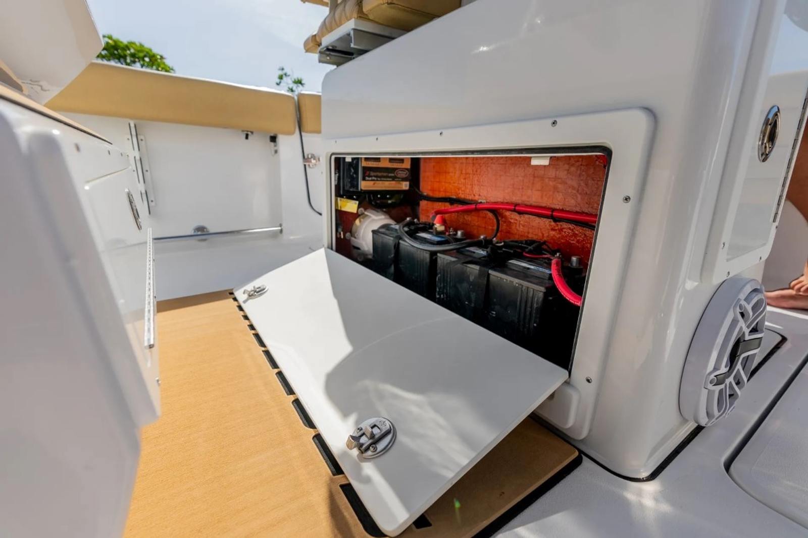 Under the hood, the Sportsman Heritage 261 is powered by twin Yamaha F200XSA2 outboards, each boasting 200 horsepower for a combined total of 400 horsepower. These white engines not only enhance the boat’s modern aesthetic but also provide the reliable, smooth, and efficient performance Yamaha is known for. With this power package, you’ll experience exhilarating acceleration, confident handling, and the ability to reach your favorite destinations quickly and efficiently. Whether you’re navigating choppy offshore waters or cruising calm inland lakes, the Heritage 261’s performance is sure to impress even the most discerning boating enthusiasts.