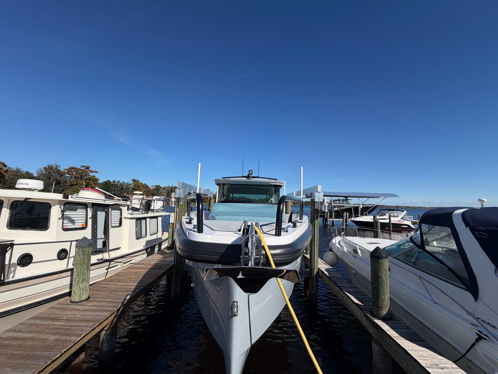 This boat has lived on a lift in the St. Johns River predominantly in fresh and brackish water. This Axopar 37XC has been meticulously maintained
