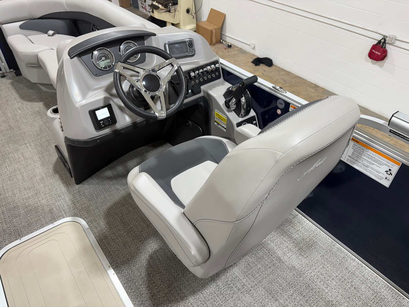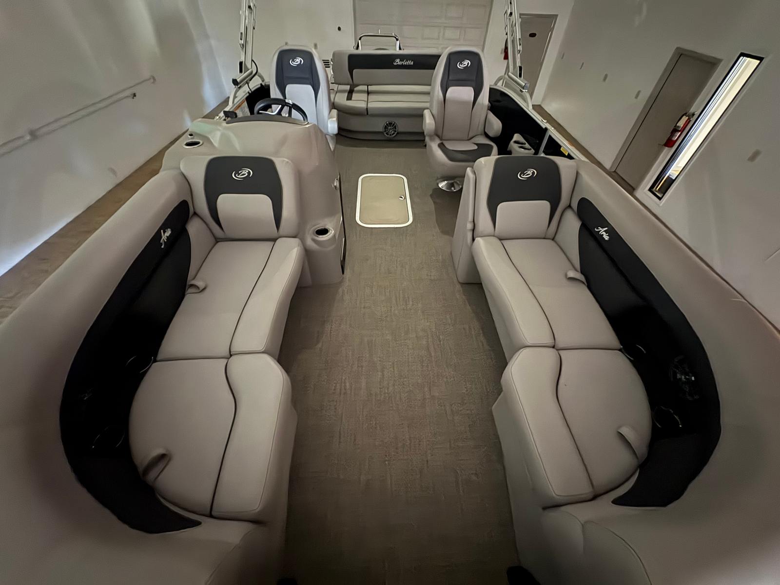 The 2025 Barletta Aria A22UC is a 21-foot pontoon boat that captures attention with its sleek lines and modern design. As a used pontoon boat, it offers the unique advantage of premium features at a more accessible price point, making it an attractive option for boating enthusiasts seeking quality and value. The Aria A22UC’s generous length provides ample space for passengers to move about comfortably, ensuring that every outing is both enjoyable and memorable. The combination of the Triple Toon Package and the striking Blue Sapphire Railskin creates a visual statement that is sure to turn heads at any marina or lake.
