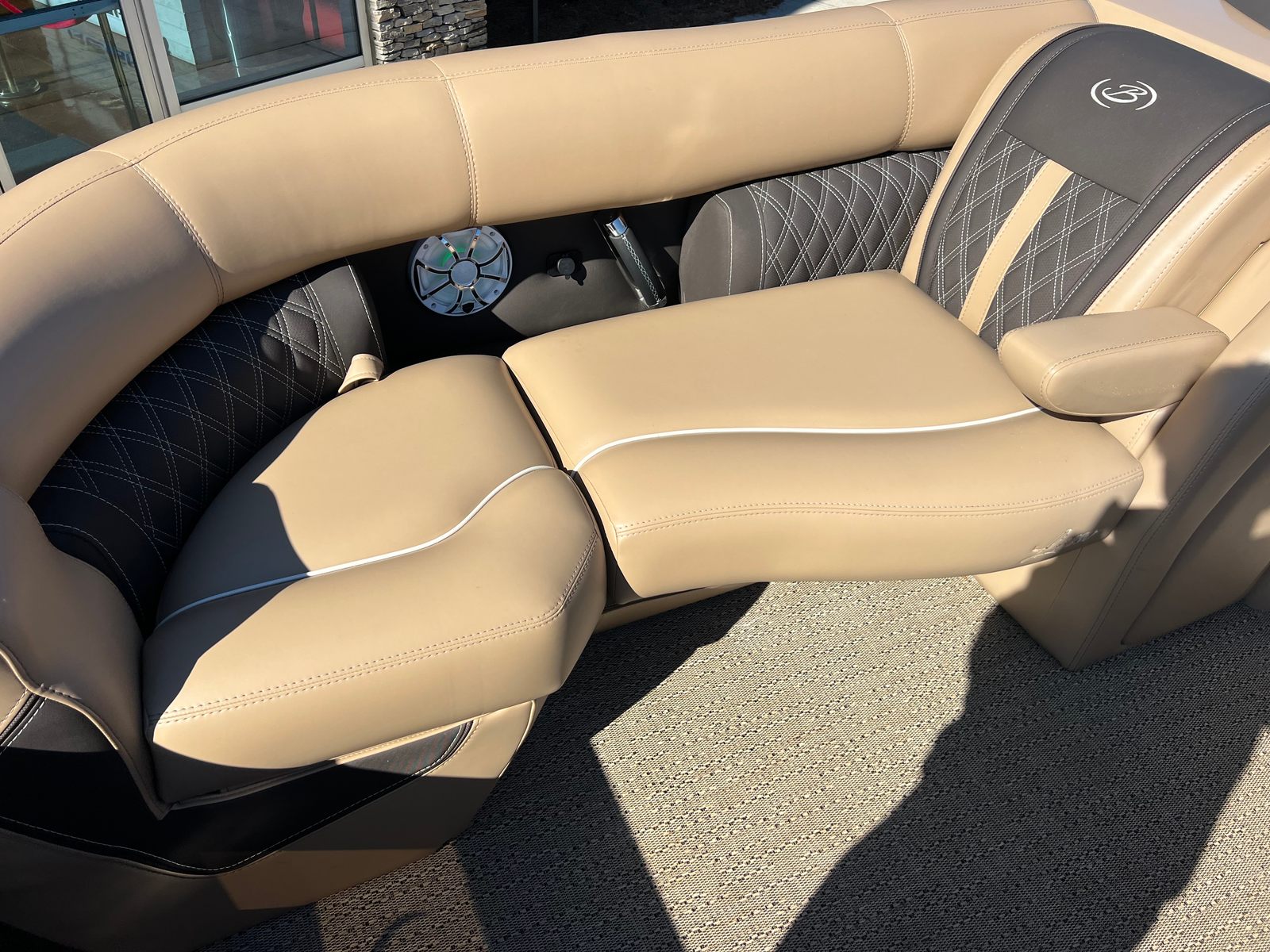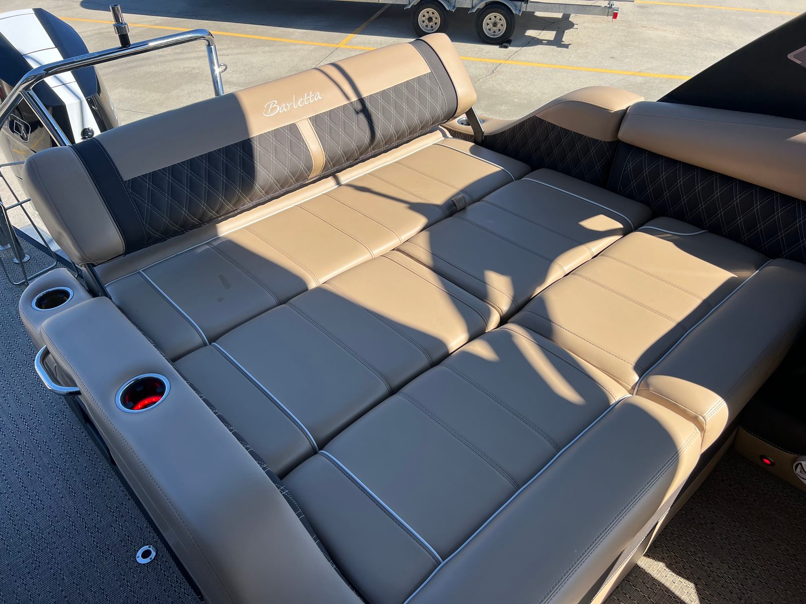 At the heart of the Barletta Lusso L23UA is a powerful single engine delivering an impressive 350 horsepower. This robust engine ensures smooth acceleration, responsive handling, and the ability to glide effortlessly across the water. The Lusso L23UA’s performance capabilities make it ideal for a variety of activities, from leisurely cruises to thrilling water sports. The combination of power and precision allows you to navigate with confidence, whether you are exploring new waterways or docking at your favorite marina.