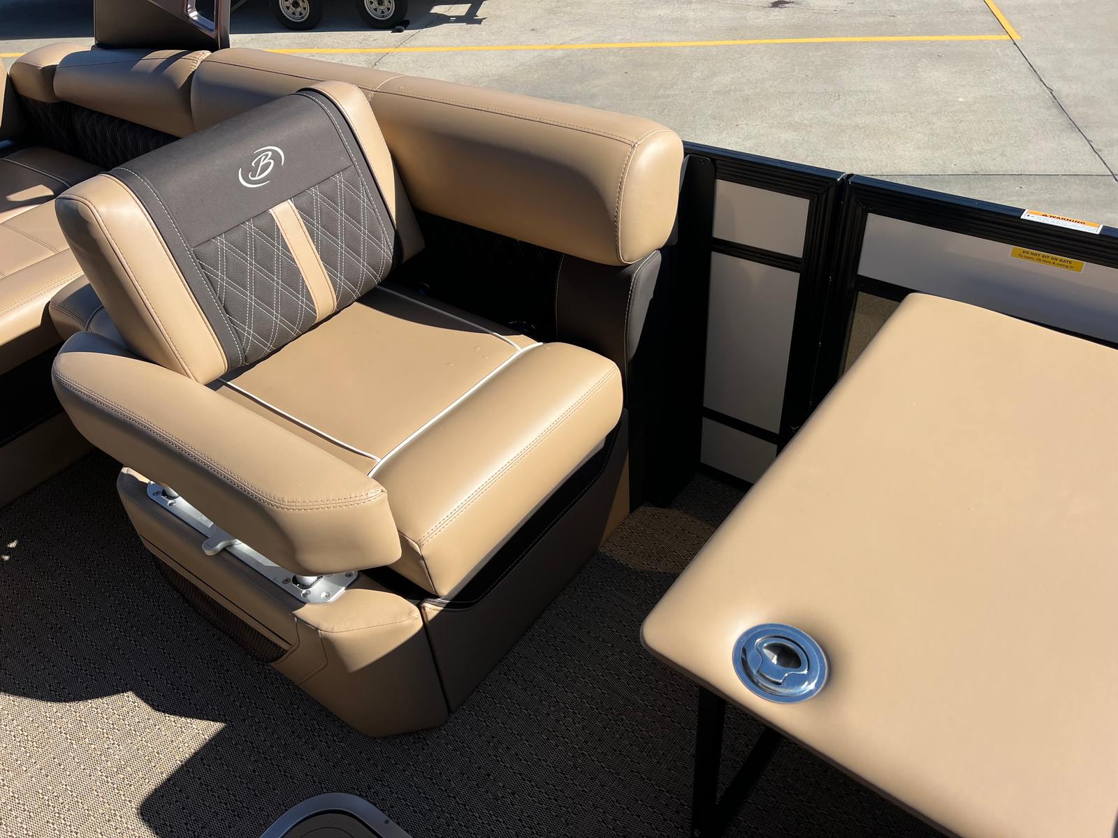 In addition to its recreational appeal, the Barletta Lusso L23UA offers practical benefits that make ownership a pleasure. The intuitive layout and user-friendly controls make docking and maneuvering a breeze, even for those new to boating. The efficient engine delivers impressive performance while helping to optimize fuel usage, so you can spend more time on the water and less time at the pump.Storage is another key advantage of this pontoon boat for sale. The Lusso L23UA is designed with ample storage compartments, allowing you to keep your gear organized and easily accessible. Whether you are packing for a day of fishing, water sports, or a family picnic, you will appreciate the thoughtful storage solutions that keep the deck clutter-free.