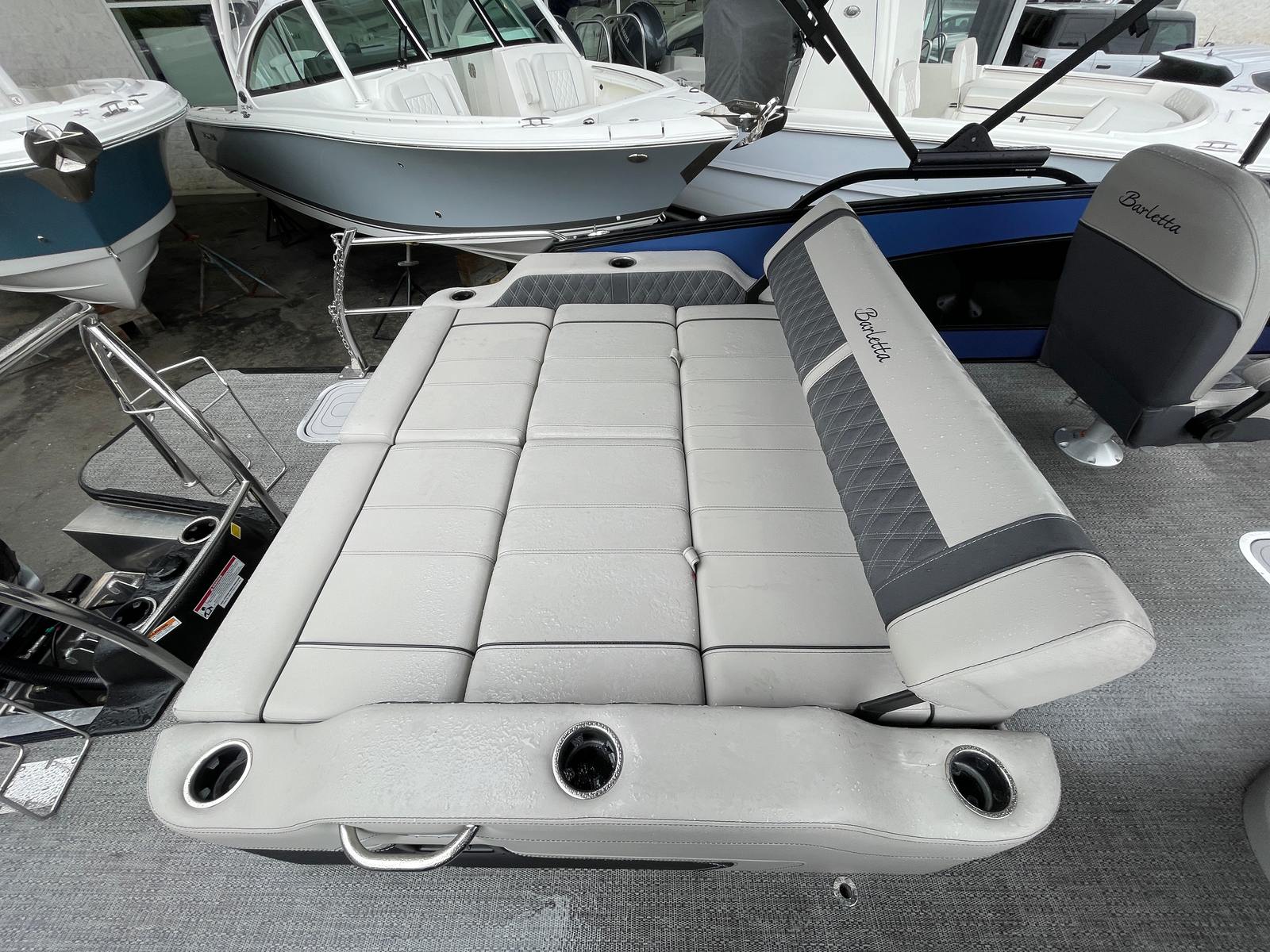 Beyond its recreational appeal, the Barletta Lusso L23UC offers practical benefits that make ownership a breeze. The generous deck space provides plenty of room for storing gear, coolers, and water toys, so you’re always prepared for a day of adventure. The boat’s layout is designed for easy movement and accessibility, making docking and boarding simple and stress-free.Fuel efficiency is another advantage of this pontoon boat, allowing you to spend more time on the water and less time refueling. The Lusso L23UC’s reliable engine and sturdy construction mean you can count on it for years of trouble-free operation, minimizing maintenance and maximizing enjoyment. Whether you’re planning a quick outing or an extended trip, this Barletta boat for sale offers the versatility and convenience you need to make the most of your boating lifestyle.