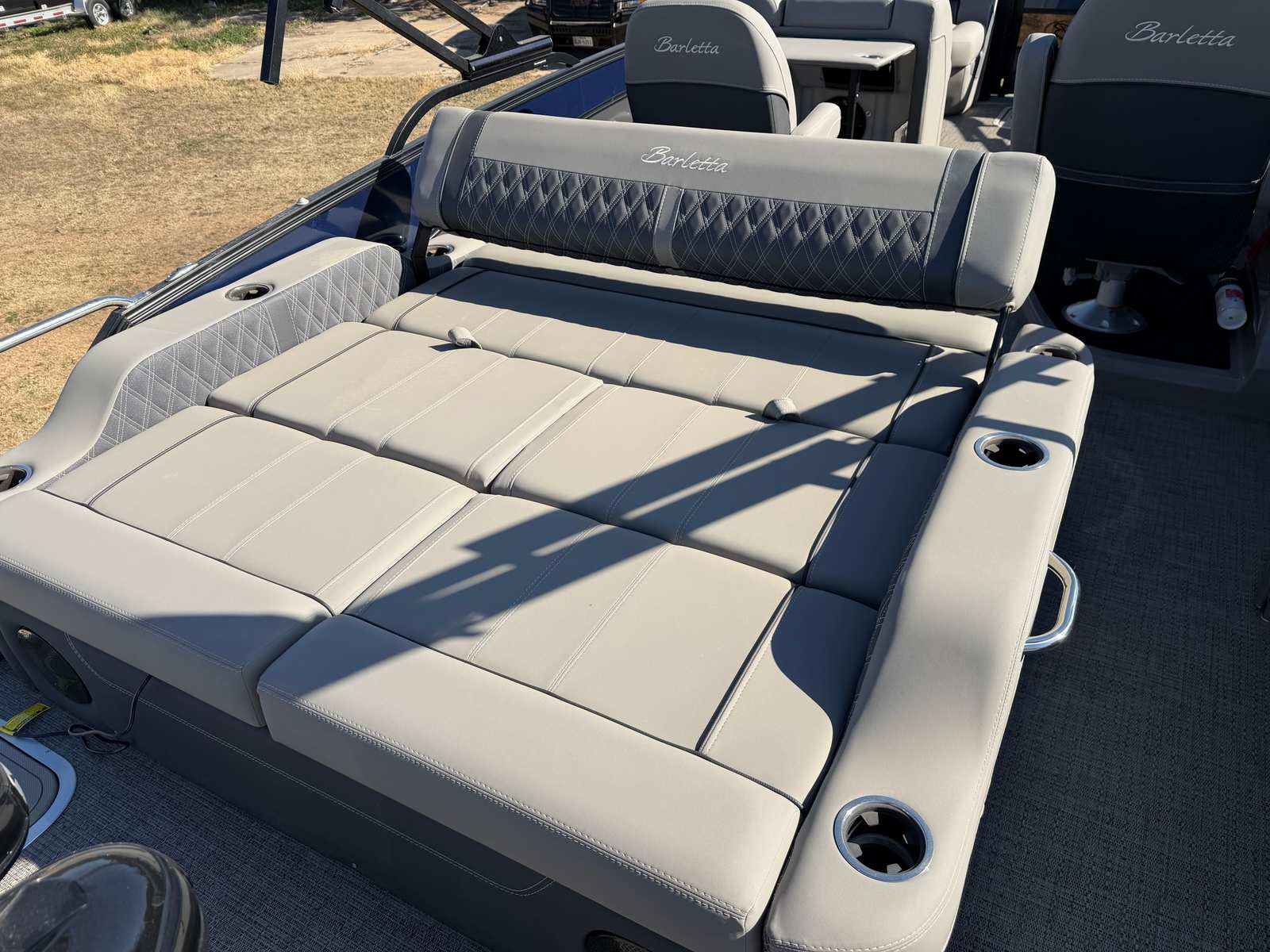 Powered by a robust 350-horsepower engine, the Barletta Lusso L23UC delivers exhilarating performance on the water. With just 30 engine hours, this pontoon boat is barely broken in, ensuring reliability and longevity for seasons to come. The powerful engine provides smooth acceleration and impressive top speeds, making it ideal for water sports, cruising, or simply enjoying a leisurely ride. The Lusso L23UC’s advanced engineering ensures responsive handling and a stable ride, even when navigating choppy waters or making tight turns. Whether you’re towing a tube, heading to your favorite cove, or simply enjoying a sunset cruise, this Barletta boat for sale offers the performance you need for any adventure.