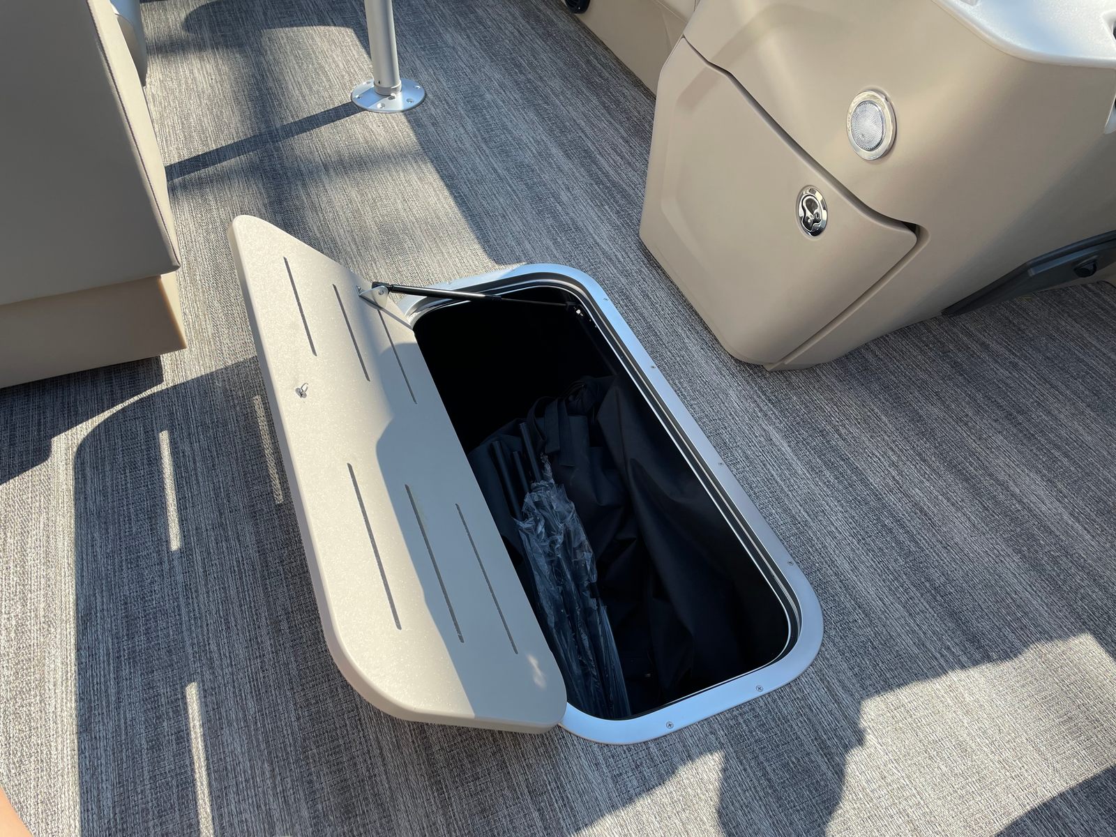 This pontoon boat is as practical as it is luxurious. The nearly 22-foot length provides generous storage options for gear, water toys, and personal items, keeping your deck clutter-free and organized. The efficient 150 HP engine offers a balance of power and fuel economy, allowing you to spend more time on the water and less time refueling. The easy-to-use battery switch and intuitive controls make operation straightforward, even for those new to boating. Docking and maneuvering are a breeze, thanks to the responsive handling and well-designed layout, making this Bennington boat for sale an excellent choice for both seasoned boaters and newcomers alike.