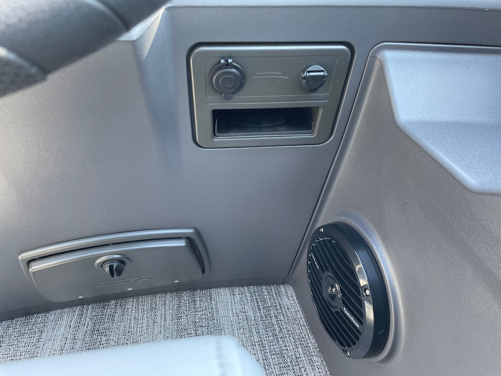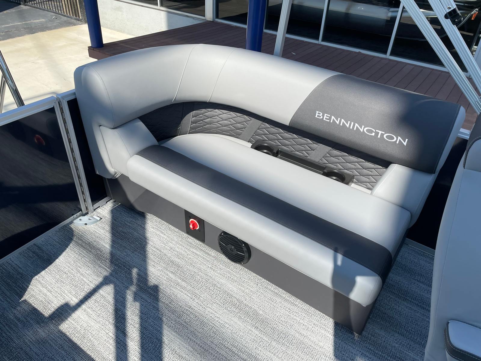Step aboard the Bennington 21 SSR SPS and discover a host of special features designed to elevate your boating experience. The single switch battery system offers convenient power management, while the underdeck wave shield helps ensure a smooth and quiet ride by reducing water resistance. Stay connected and charged with the integrated wireless charger, and enjoy added protection from the elements with the stylish windscreen.For those who love watersports, the ski tow bar—part of the SPS package—makes it easy to enjoy wakeboarding, tubing, and skiing adventures. The accent in Smooth Gemini Black adds a touch of sophistication to the boat’s exterior, while the Serene Soft Touch Vinyl with Simtex accents and diamond pressed lumbar provides plush, supportive seating for all passengers. In-floor storage in the SPS S Series keeps your gear organized and out of the way, and the LaColla steering wheel with chrome accents adds a dash of elegance to the helm.