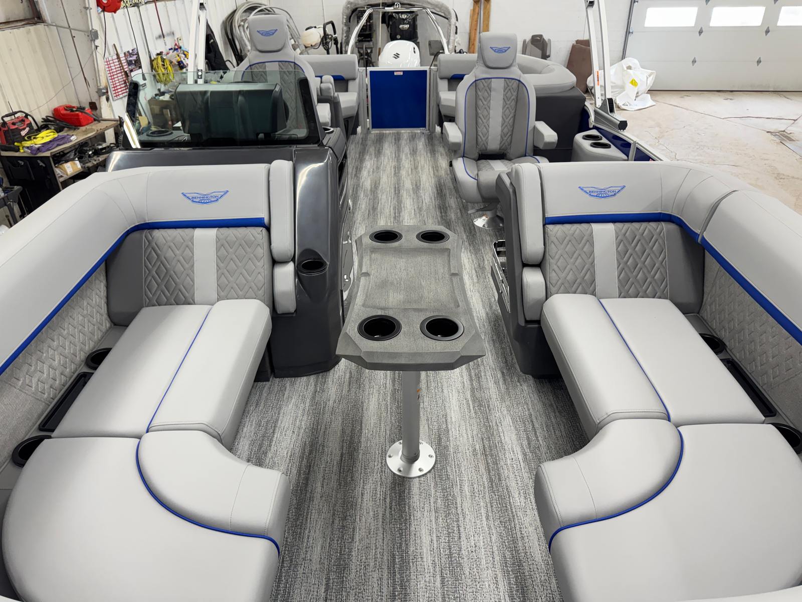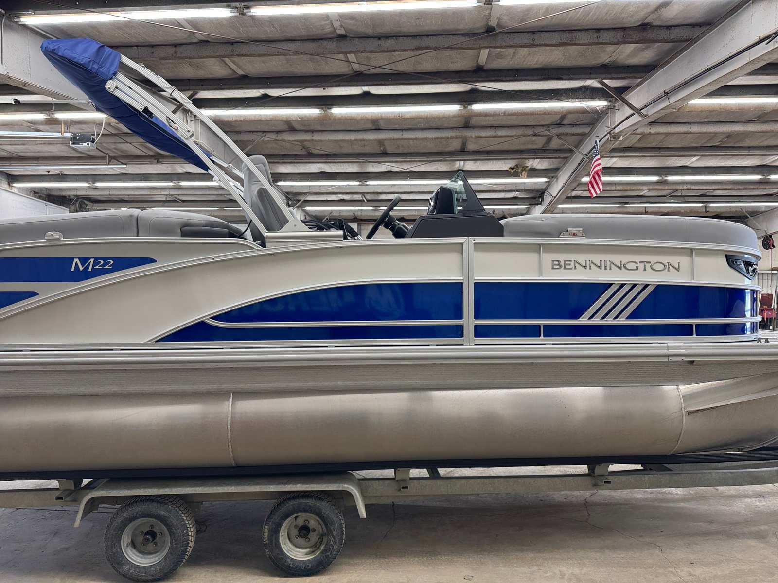 The 2026 Bennington 22 MFB SPS pontoon is a remarkable blend of style, performance, and versatility. With its striking Smooth Metallic Luminous Blue and White exterior, luxurious Luminous Blue Simtex interior, and advanced features like the Suzuki DF200ATXW5 engine, Power Hydraulic Assist steering, and Electric Power Top Bimini, this new Bennington boat for sale is designed to exceed your expectations. The elevated console, removable flag pole, and spacious layout ensure that every outing is comfortable, convenient, and memorable.If you are ready to elevate your boating experience and enjoy the ultimate in comfort, performance, and style, the Bennington 22 MFB SPS is the perfect choice. Don’t miss your chance to own this exceptional pontoon boat – contact your local dealer today to learn more and schedule a viewing. Your next adventure awaits on the water!