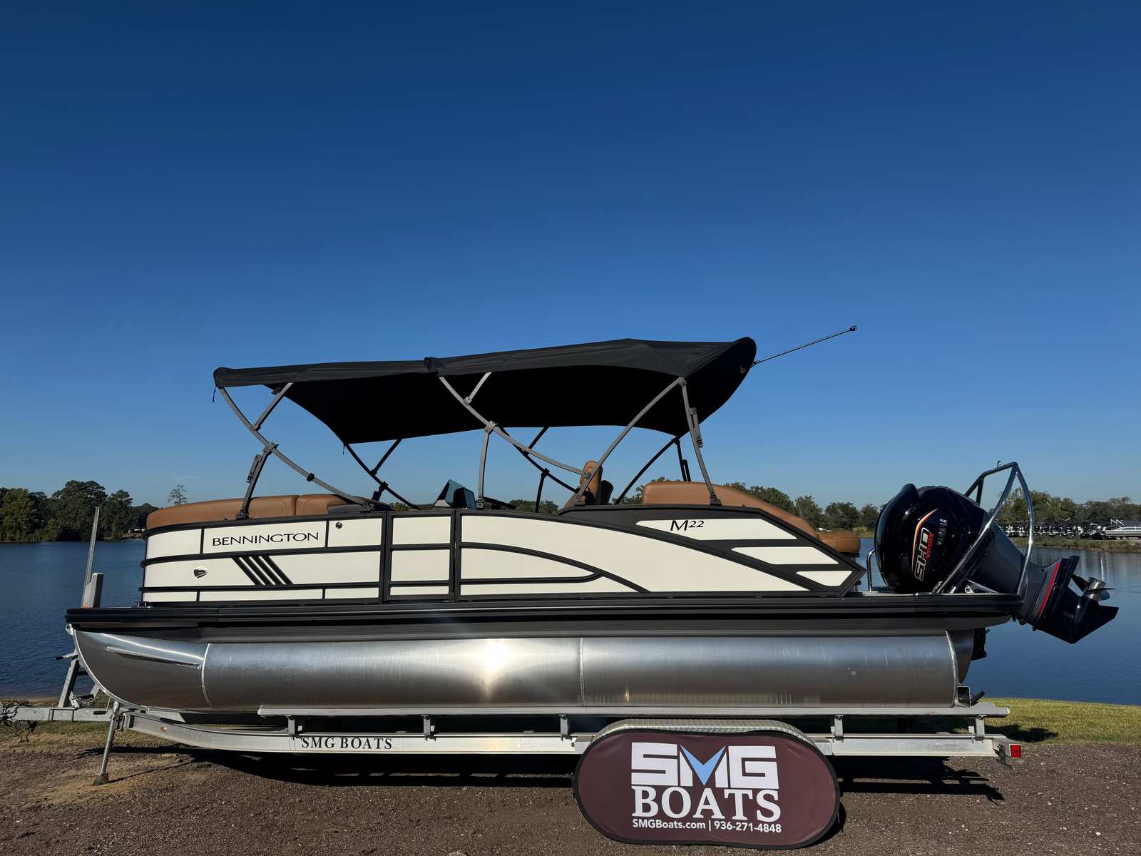 The 2026 Bennington 22 MSB SPS Pontoon stands out as a premier vessel in its class, offering a perfect balance of style and functionality. Measuring an impressive 24.25 feet in length, this new pontoon provides ample space for family and friends to gather, relax, and enjoy every moment on the water. The smooth metallic white paneling gives the boat a modern, sophisticated look that is sure to turn heads at any marina or lakefront. As a new model, you can expect the latest advancements in comfort, safety, and technology, making this Bennington boat for sale a smart investment for years of memorable adventures.