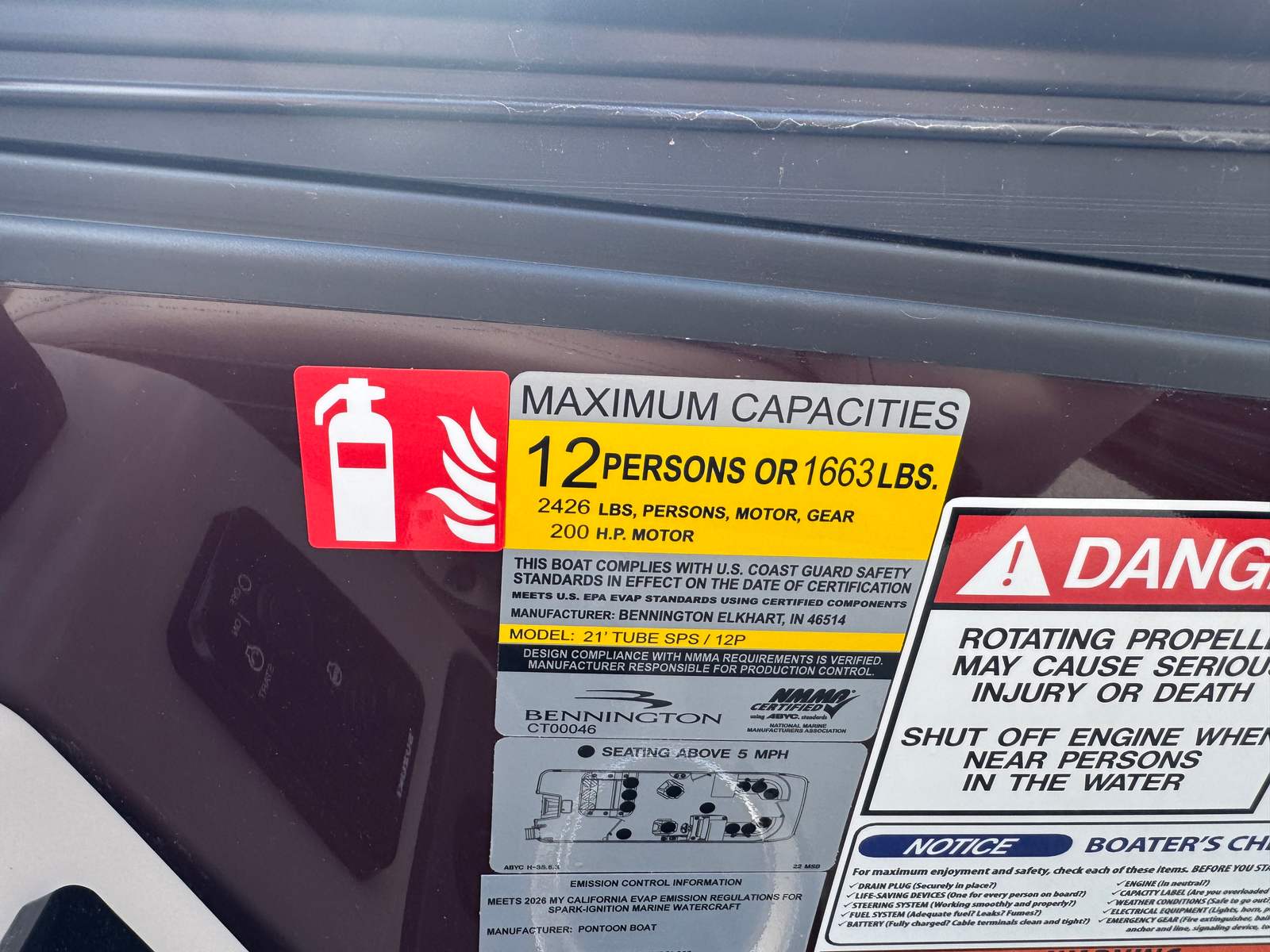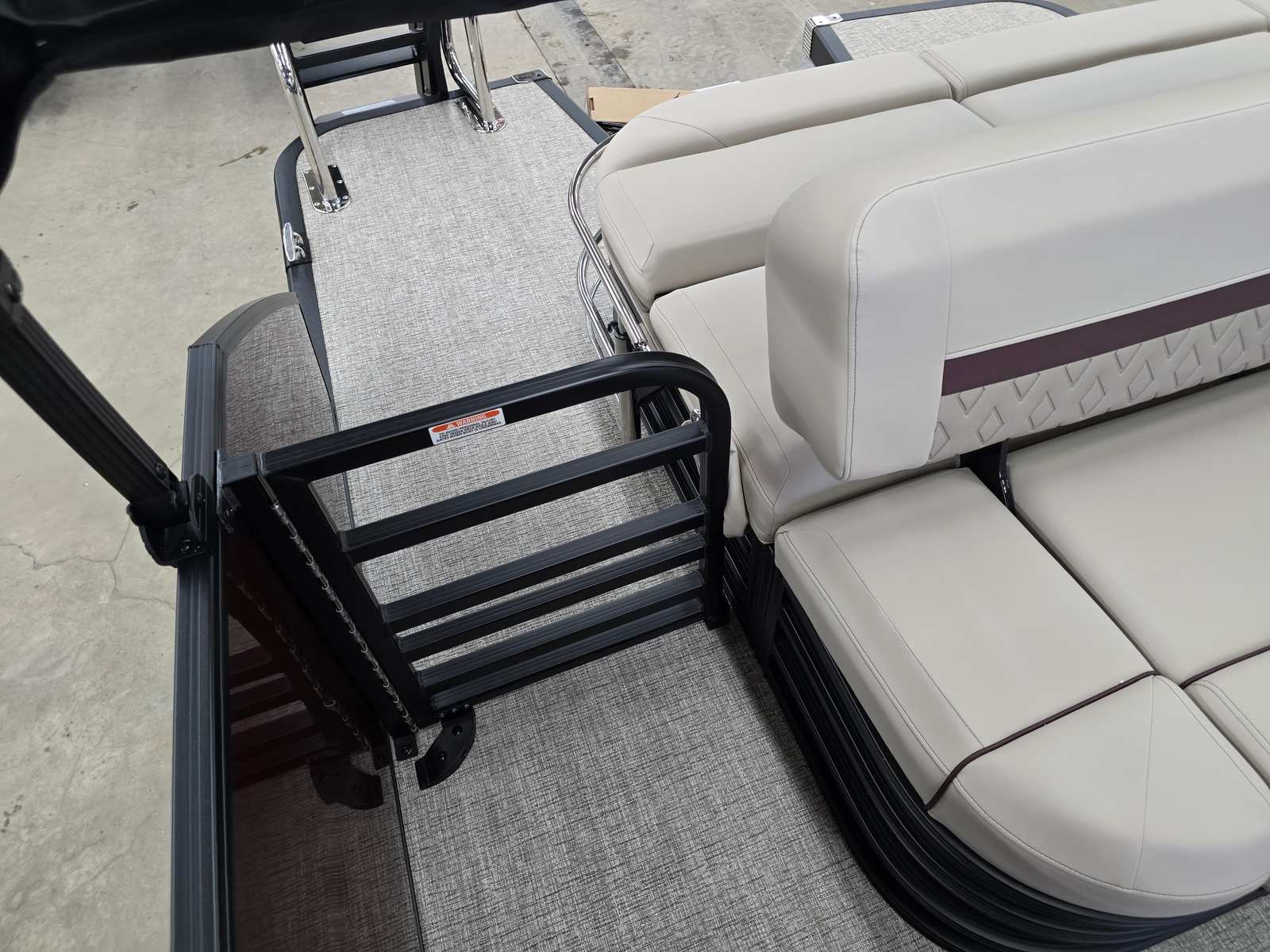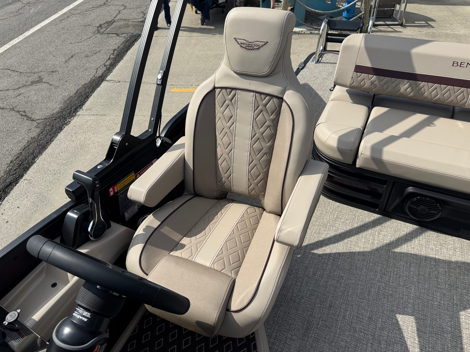 The Bennington 22 MSB SPS is loaded with special features that enhance both its aesthetics and functionality. The exterior boasts a striking Panel in Smooth Sunset Red, complemented by an Accent in Smooth Satin Black, creating a bold and modern look that stands out on any waterway. Step aboard and you’ll find the Dolce Veneto interior, offering a luxurious and comfortable environment for all your guests.This pontoon is equipped with a removable flag pole and American flag, adding a touch of patriotism and flair to your outings. The Water Fuel Separator Large ensures clean fuel delivery for optimal engine performance, while the Battery: Single Switch with Fuse provides reliable power management and safety.For those who appreciate convenience and comfort, the Bimini - Electric Power Top Curved 12B S/M Blk offers effortless shade at the touch of a button, allowing you to enjoy sunny days without worry. The elevated console with pocket Dolce provides enhanced visibility and a stylish command center for the captain.