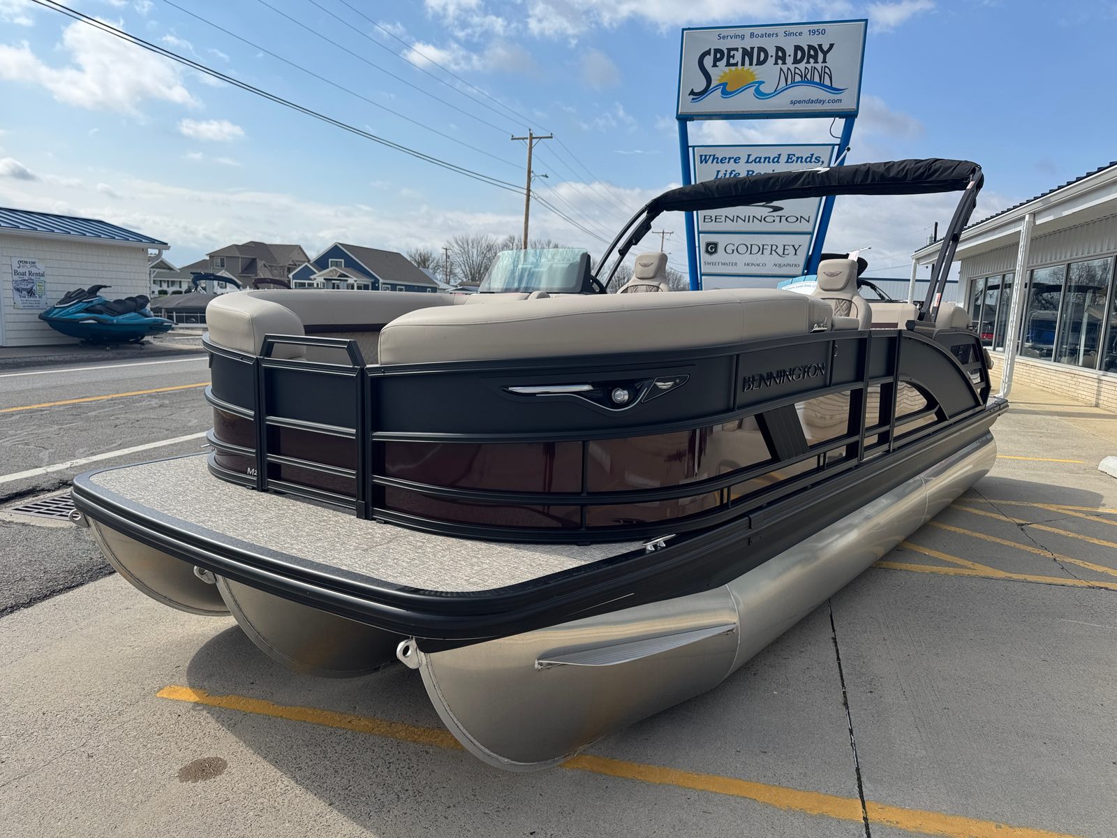 Owning the Bennington 22 MSB SPS pontoon means embracing a lifestyle of relaxation, fun, and social connection. The spacious layout is perfect for hosting gatherings, whether you’re sharing a meal, playing games, or simply soaking up the sun. The plush Dolce Veneto seating invites you to unwind in comfort, while the elevated console ensures the captain enjoys both style and superior control.The electric power top Bimini makes it easy to adapt to changing weather, providing shade and protection when you need it most. The removable flag pole with American flag adds a festive touch to your adventures, making every outing feel like a celebration. With its smooth handling and powerful engine, this Bennington boat for sale is designed to create lasting memories on the water.