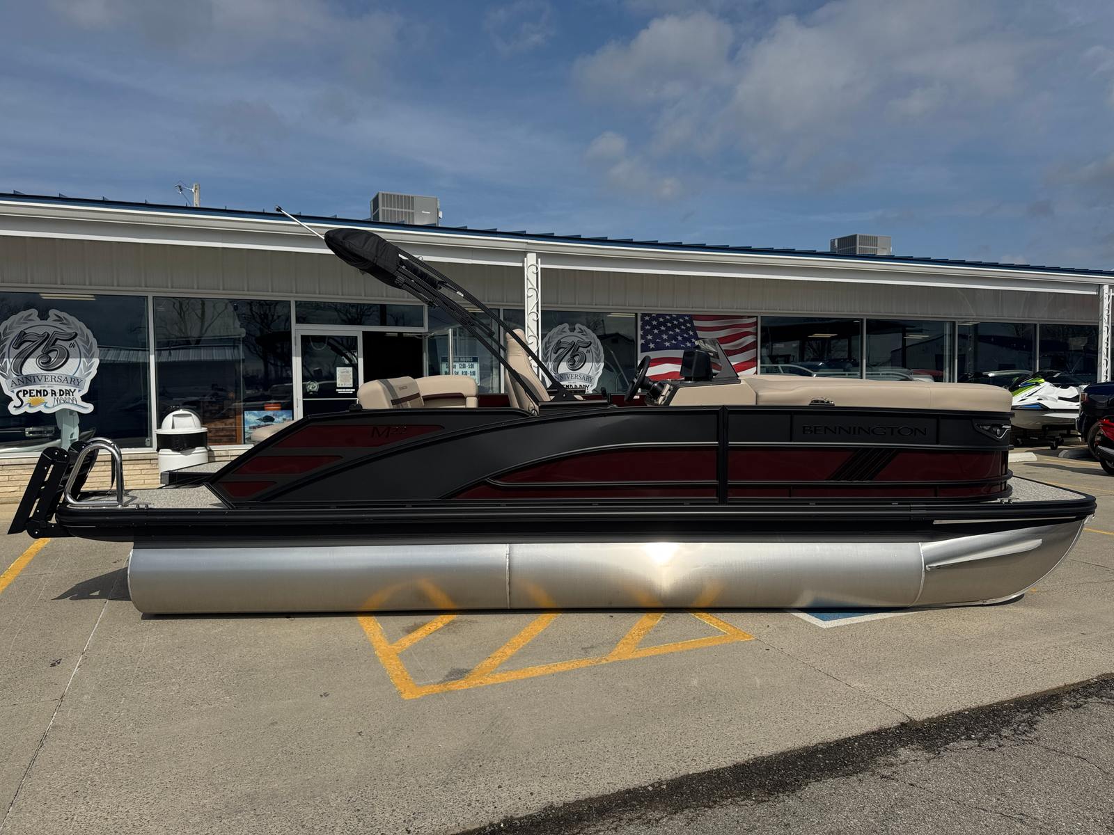 The 2026 Bennington 22 MSB SPS pontoon is a standout choice for anyone seeking a new pontoon boat for sale that delivers on style, performance, and versatility. With its powerful Suzuki DF150ATXSS5 engine, striking Smooth Sunset Red and Satin Black accents, luxurious Dolce Veneto interior, and innovative features like the electric power top Bimini and elevated console, this Bennington boat for sale is designed to impress.Experience the perfect blend of comfort, convenience, and excitement every time you hit the water. Don’t miss your chance to own this exceptional pontoon boat – contact your local dealer today to learn more and schedule a viewing. Your next adventure awaits with the Bennington 22 MSB SPS!