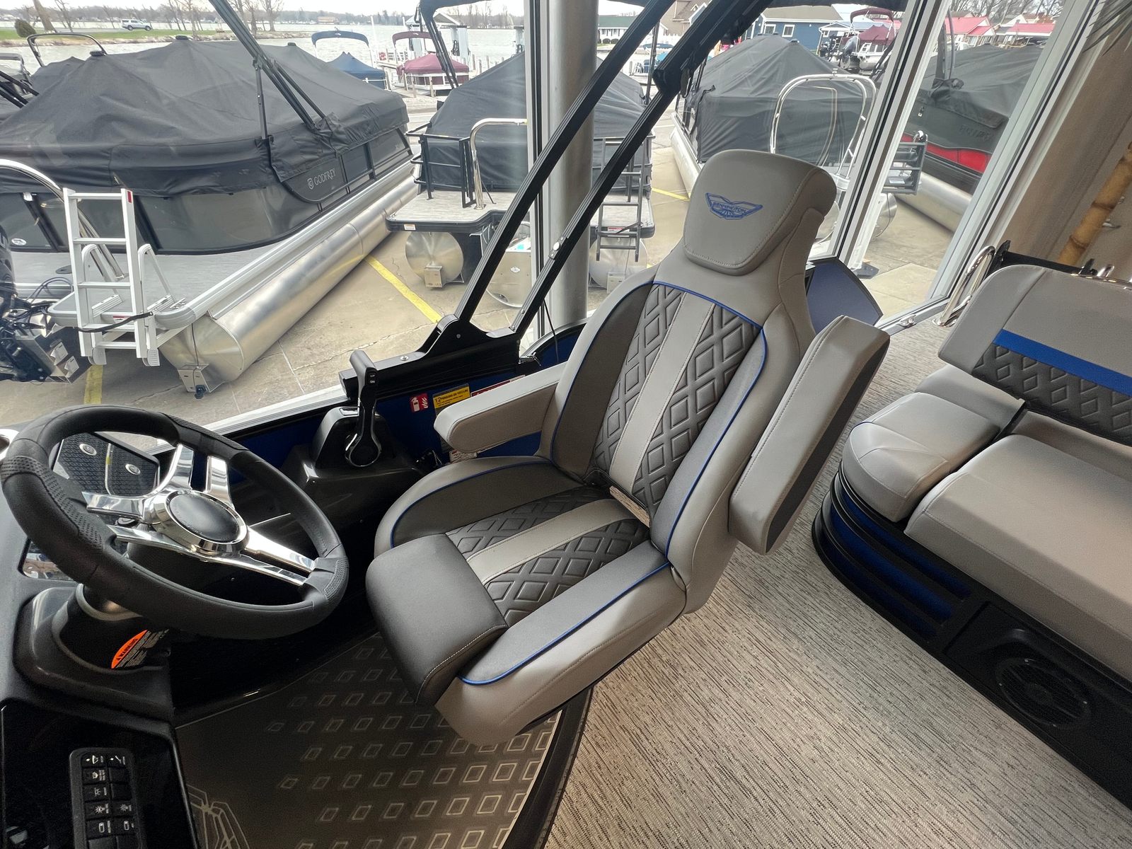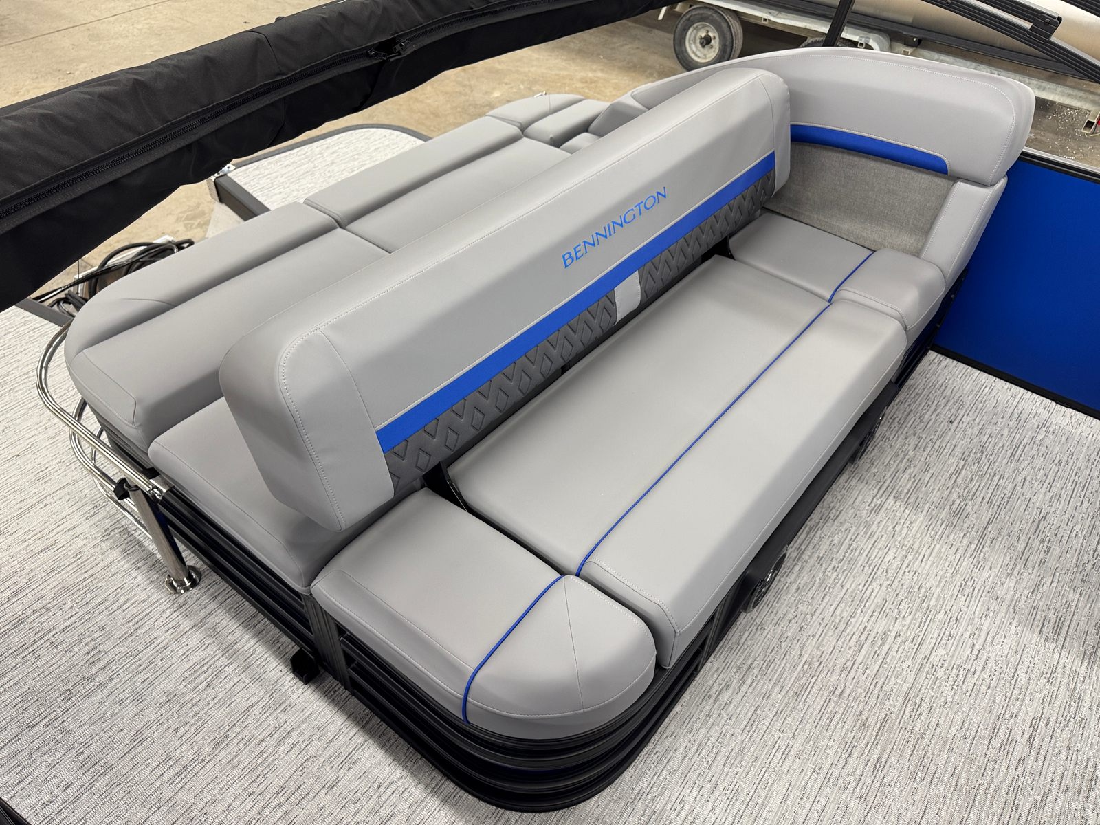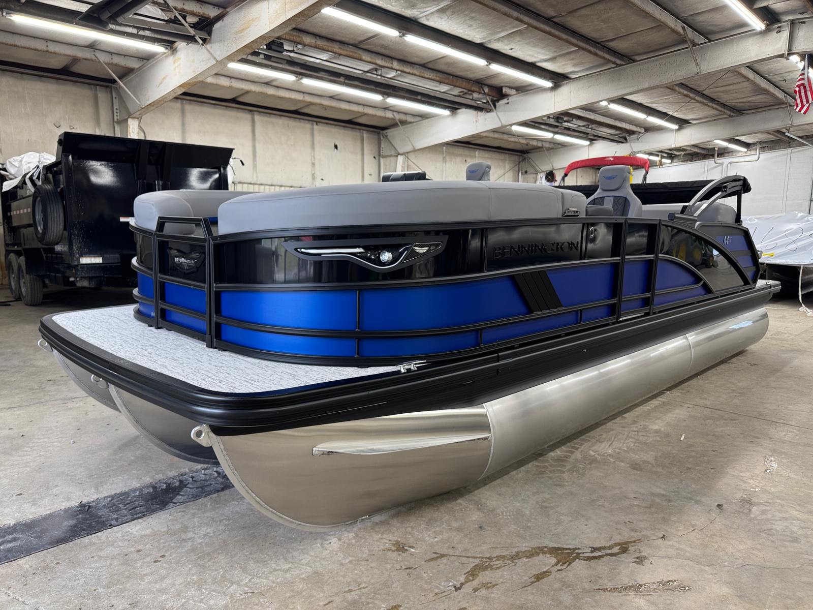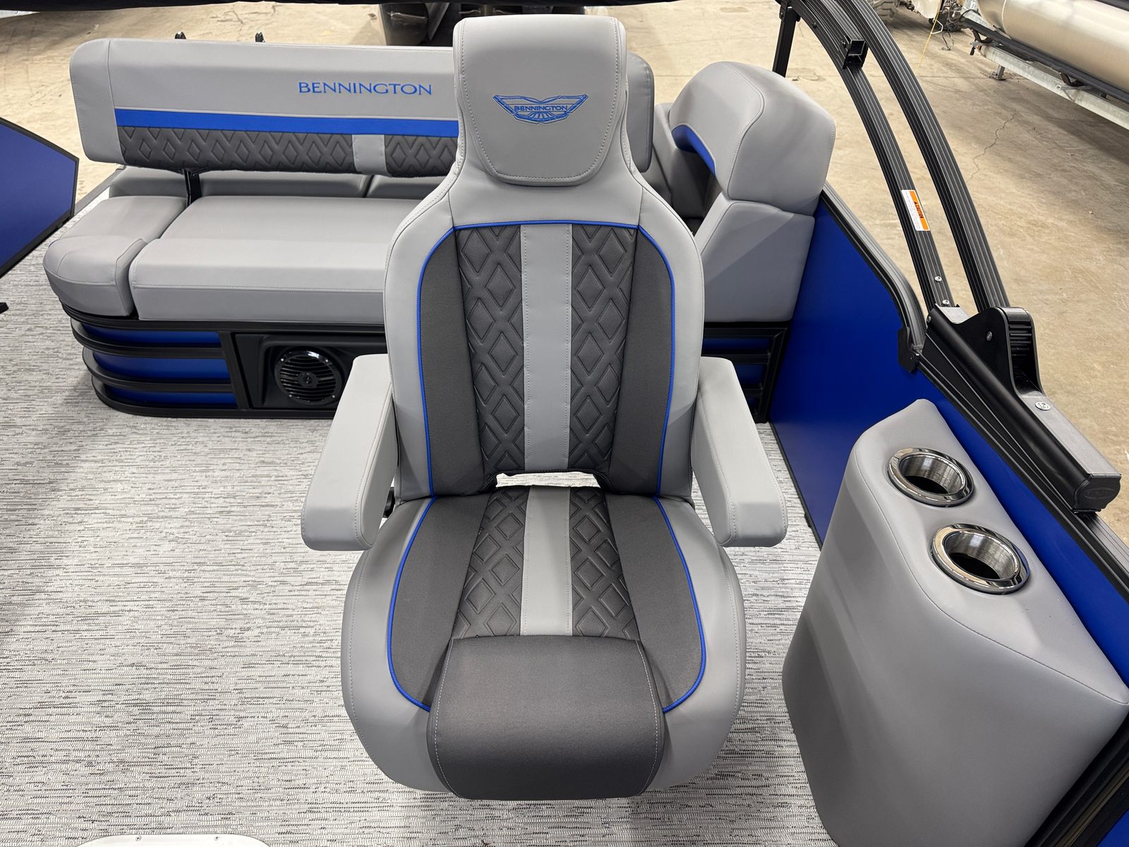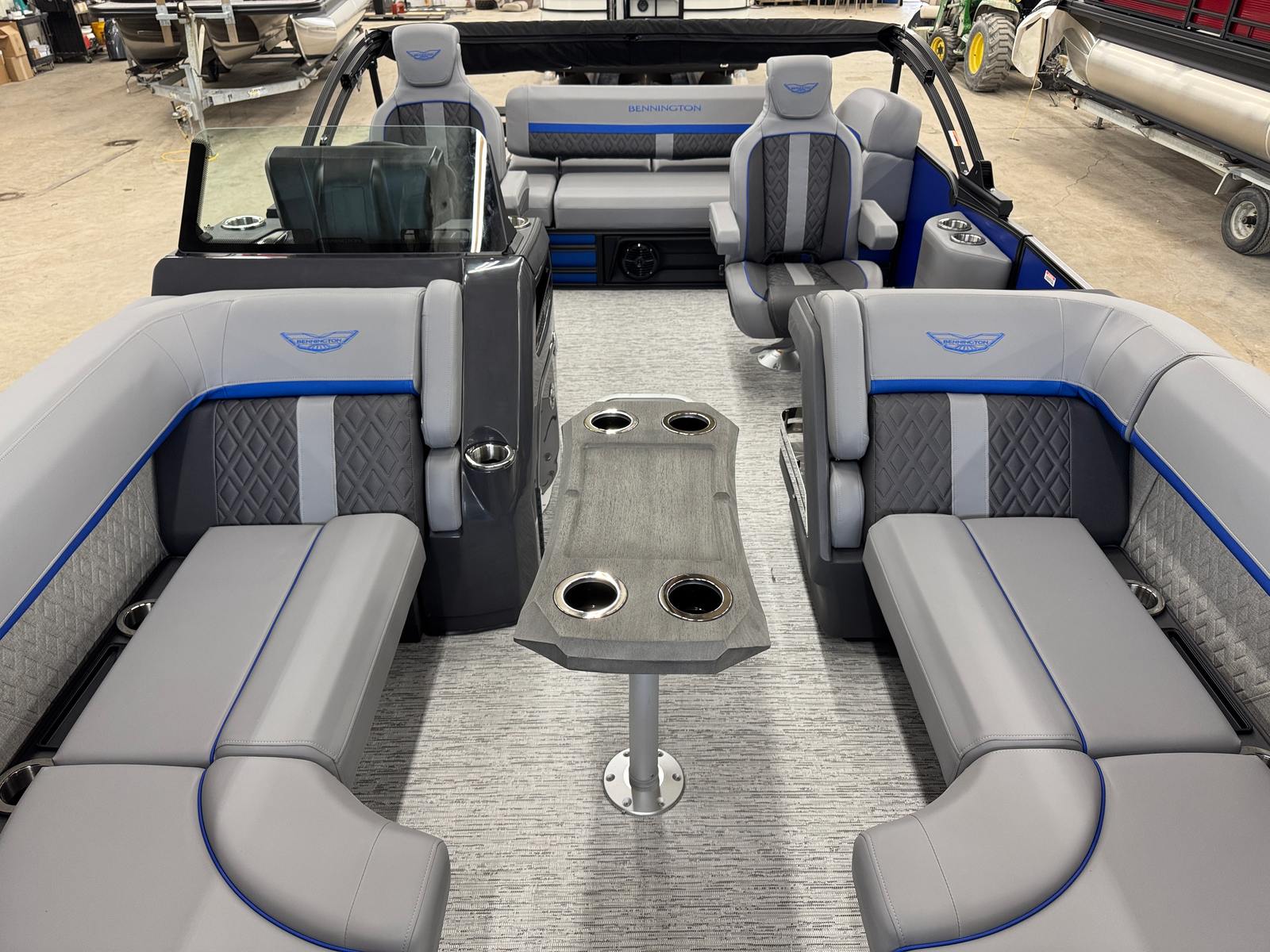 The 2026 Bennington 22 MSB SPS is a 24.25-foot pontoon that embodies the renowned craftsmanship and innovation that Bennington is known for. With its sleek profile and eye-catching color scheme, this Bennington boat for sale is sure to turn heads at the marina and on the open water. The smooth matte Luminous Blue panels, accented by Smooth Gemini Black, create a modern and sophisticated look, while the Graphite Veneto and Luminous Blue Simtex interior accents add a touch of elegance and comfort to every journey.