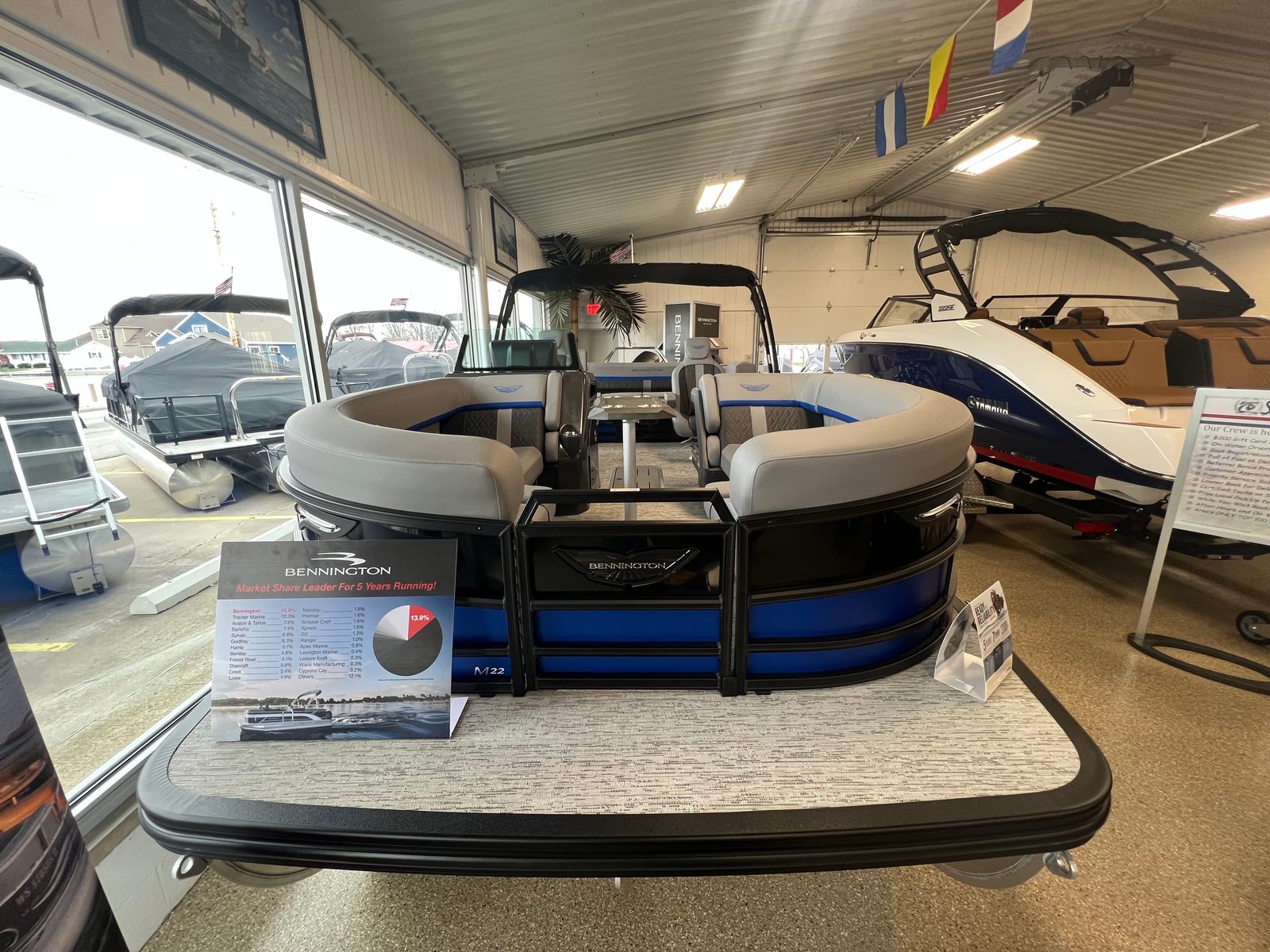 The 2026 Bennington 22 MSB SPS pontoon boat is a standout choice for anyone seeking a new pontoon boat for sale that combines performance, style, and comfort. With its powerful Suzuki DF200ATXSS5 engine, striking Luminous Blue and Gemini Black color scheme, elevated console, electric power Bimini top, and thoughtful interior accents, this Bennington boat for sale is ready to deliver unforgettable moments on the water.If you are ready to elevate your boating lifestyle and enjoy the best that Bennington has to offer, do not miss the opportunity to make the 22 MSB SPS yours. Contact your local dealer today to learn more about this exceptional pontoon and schedule your personal viewing. Your next adventure awaits with the Bennington 22 MSB SPS!