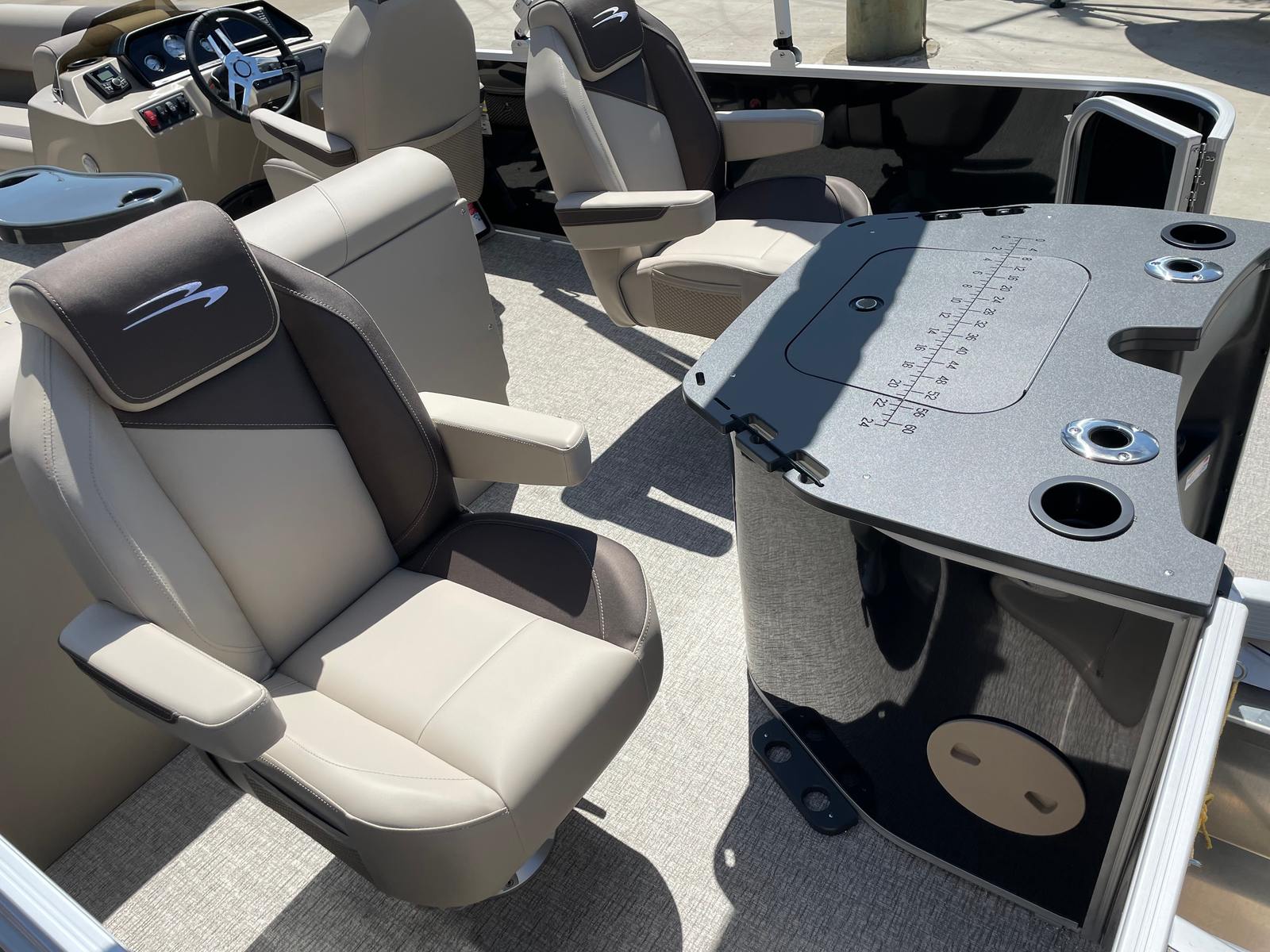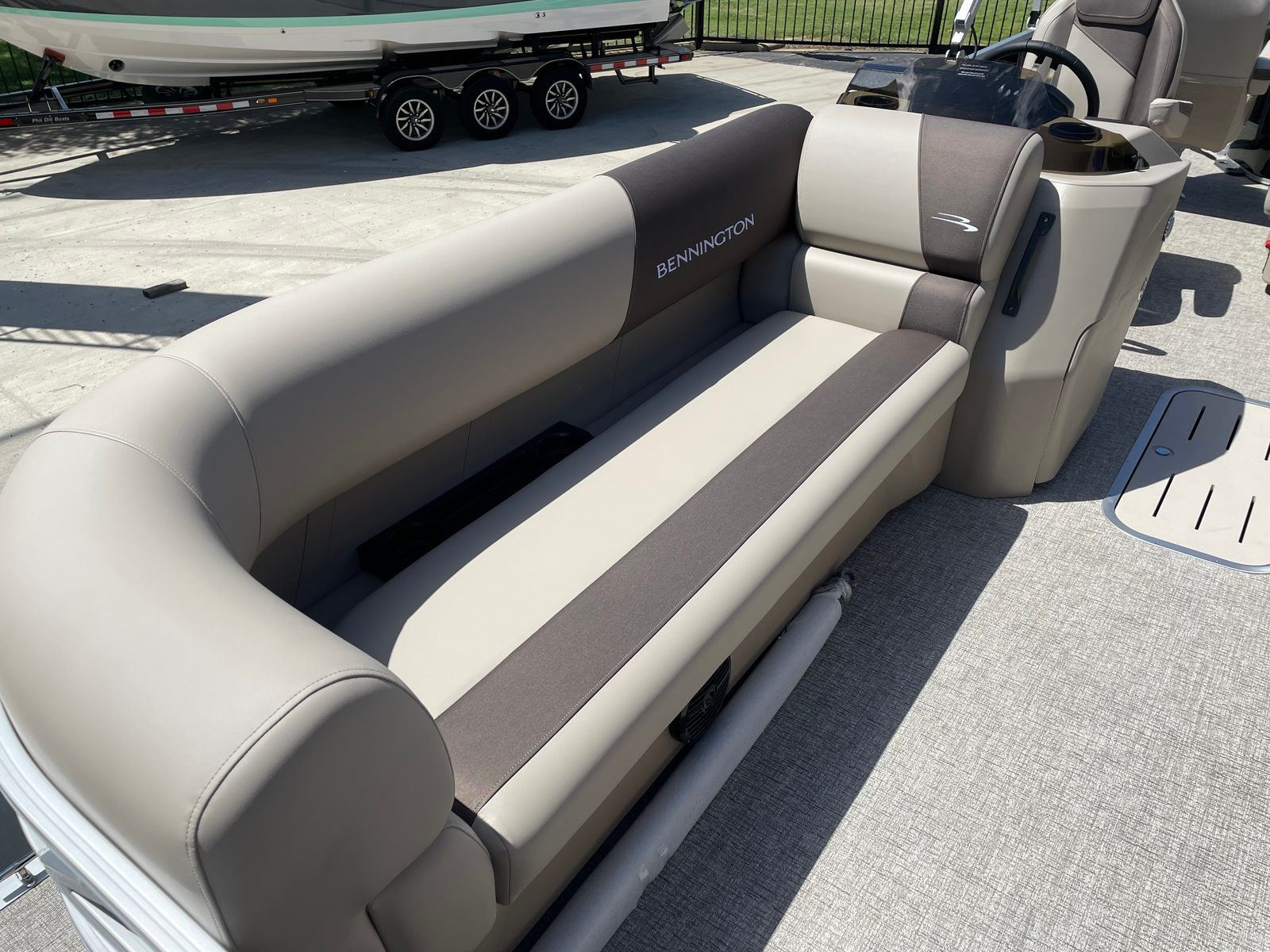 At the heart of this Bennington pontoon is a powerful Yamaha F150XD engine, delivering an impressive 150 horsepower. This single-engine setup ensures smooth acceleration, responsive handling, and reliable performance whether you are cruising at a leisurely pace or picking up speed for water sports. The Yamaha Mechanical Pre-Rig (with the hydraulic cylinder deleted) further enhances the driving experience, offering precise control and confidence at the helm. The combination of Bennington’s renowned hull design and Yamaha’s engineering excellence means you can expect a ride that is both exhilarating and efficient, making every outing on the water a pleasure.
