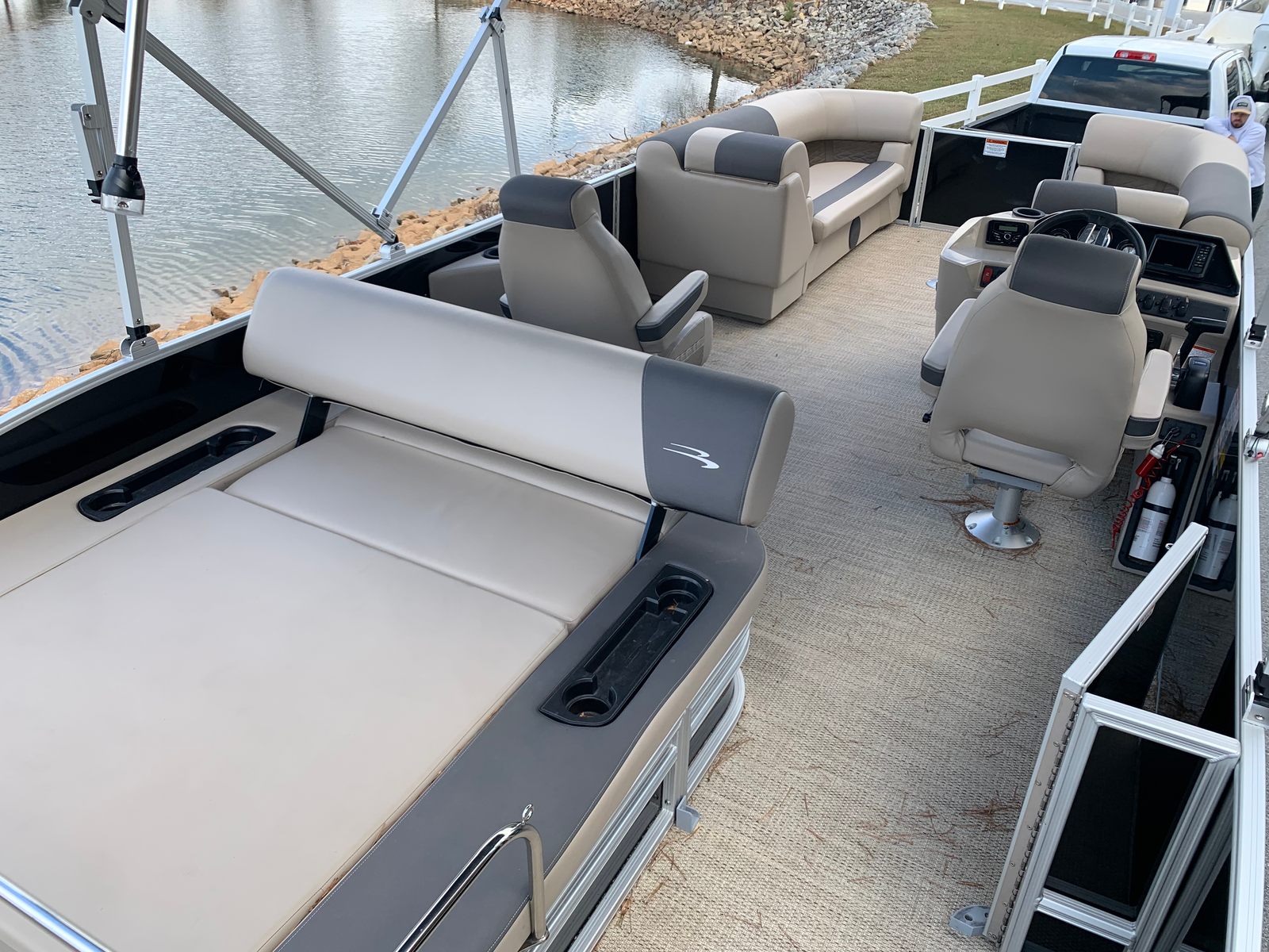 Features: -Ski Tow Bar -Lillipad Revo Ladder -Docking Lights -Garmin GPS -Kicker Radio Head Unit -Dual Captains Chairs -Aft Lounger -Aft Railing/Safety Chains
