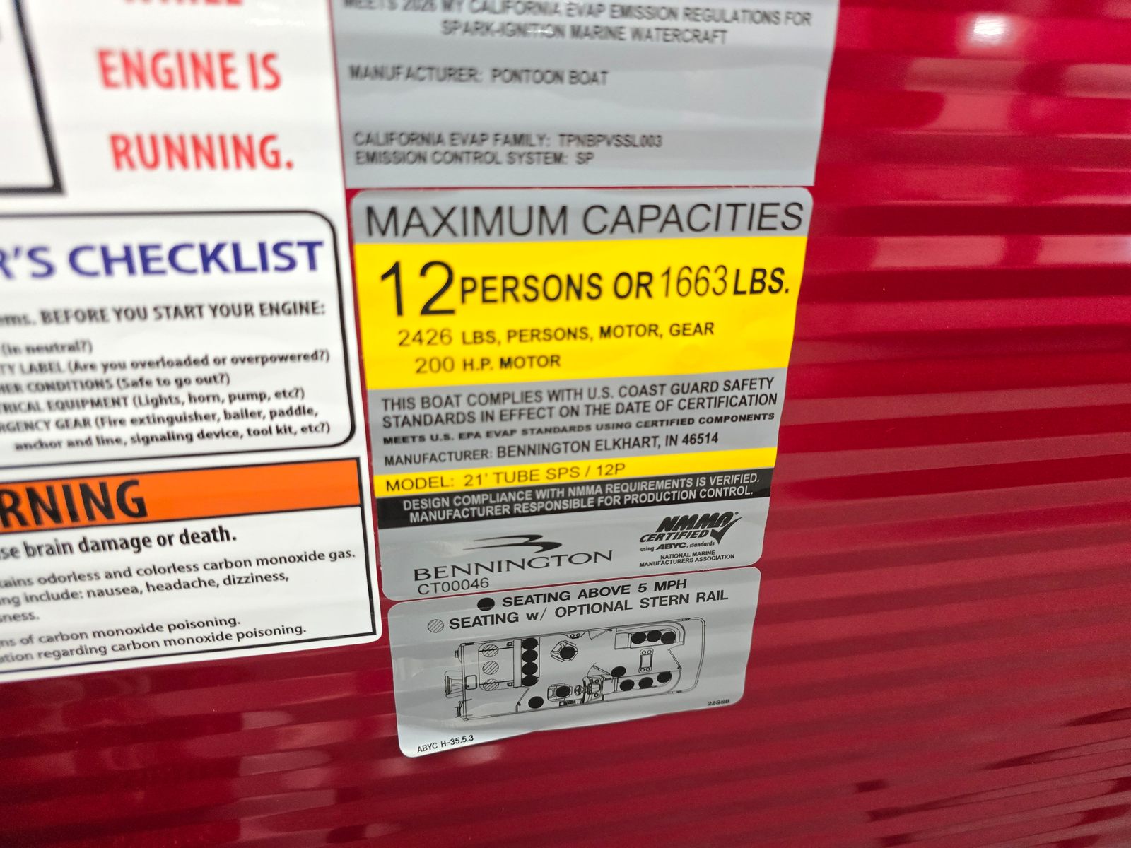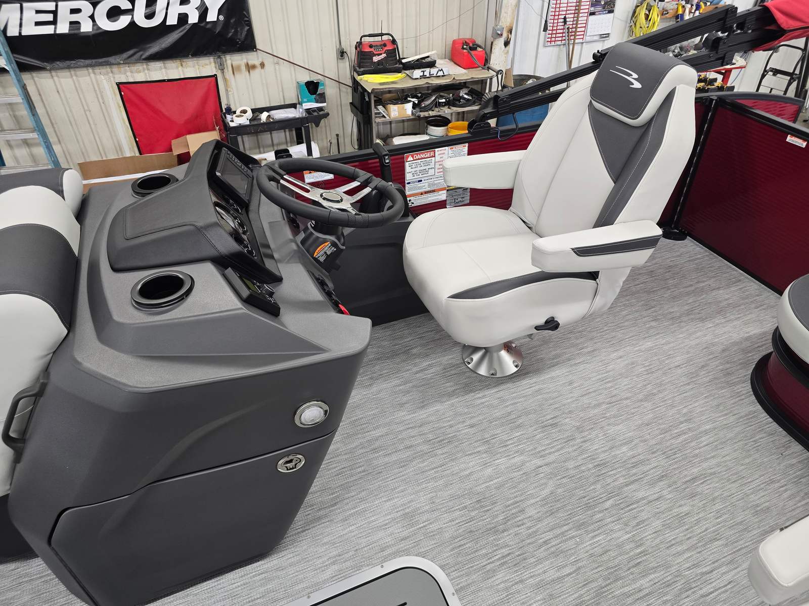 The 2026 Bennington 22 SSB SPS is loaded with special features designed to enhance your boating experience. The Blackout Logos and Blackout Luxe Package give the pontoon a sophisticated, modern look, while the No Accent - Textured finish and Ironwood Dash Accent add a touch of elegance to the interior. The wireless charger keeps your devices powered up throughout the day, ensuring you stay connected and entertained. For those who love water sports, the Ski Tow Bar - SPS provides the perfect setup for tubing, wakeboarding, or skiing. The Bimini - 8.5X10 Blk offers generous shade, allowing you to relax comfortably even on the sunniest days. The Black Rub Rail Insert not only adds to the boat’s sleek appearance but also provides extra protection along the sides.