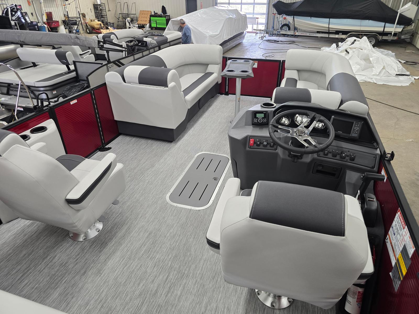 The 2026 Bennington 22 SSB SPS is a new pontoon boat that measures just under 23 feet in length, offering ample space for family and friends to relax and enjoy the water. As part of Bennington’s renowned S Series, this model is crafted with attention to detail and a focus on comfort, making it a top choice for those seeking a Bennington boat for sale that stands out in both aesthetics and functionality. The sleek lines, modern accents, and thoughtful layout make this pontoon a true head-turner at any marina or lake.