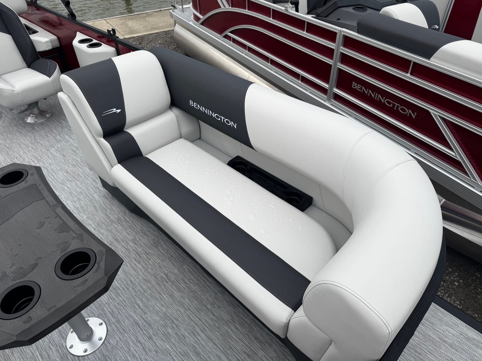The Bennington 22 SSB SPS is as practical as it is luxurious. Its nearly 23-foot length provides ample storage for gear, snacks, and water toys, so you can pack everything you need for a full day of adventure. The sturdy construction and thoughtful design make docking and maneuvering a breeze, even for those new to boating. The efficient Yamaha engine offers excellent fuel economy, allowing you to spend more time enjoying the water and less time refueling.The Bimini top provides essential shade, making it easy to stay cool during midday outings, while the ski tow bar adds versatility for active families and thrill-seekers. The wireless charger ensures your devices are always ready, whether you’re capturing memories or staying connected. Every feature is designed to make ownership easy, enjoyable, and worry-free.