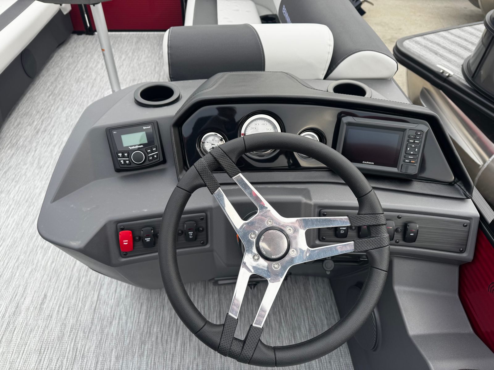 The Bennington 22 SSB SPS is packed with special features that enhance both its aesthetics and functionality. The Blackout Luxe Package gives the boat a modern, sophisticated look, complemented by blackout logos and a black rub rail insert for a sleek, cohesive appearance. The Ironwood Dash Accent adds a touch of elegance to the helm, while the wireless charger ensures your devices stay powered throughout your adventures.For those who love water sports, the Ski Tow Bar – SPS is a standout feature, making it easy to enjoy tubing, wakeboarding, or skiing. The Bimini – 8.5X10 Blk provides generous shade, allowing you to relax comfortably even on the sunniest days. The absence of accent – textured surfaces keeps the design clean and contemporary, while every detail is crafted to enhance your boating experience.