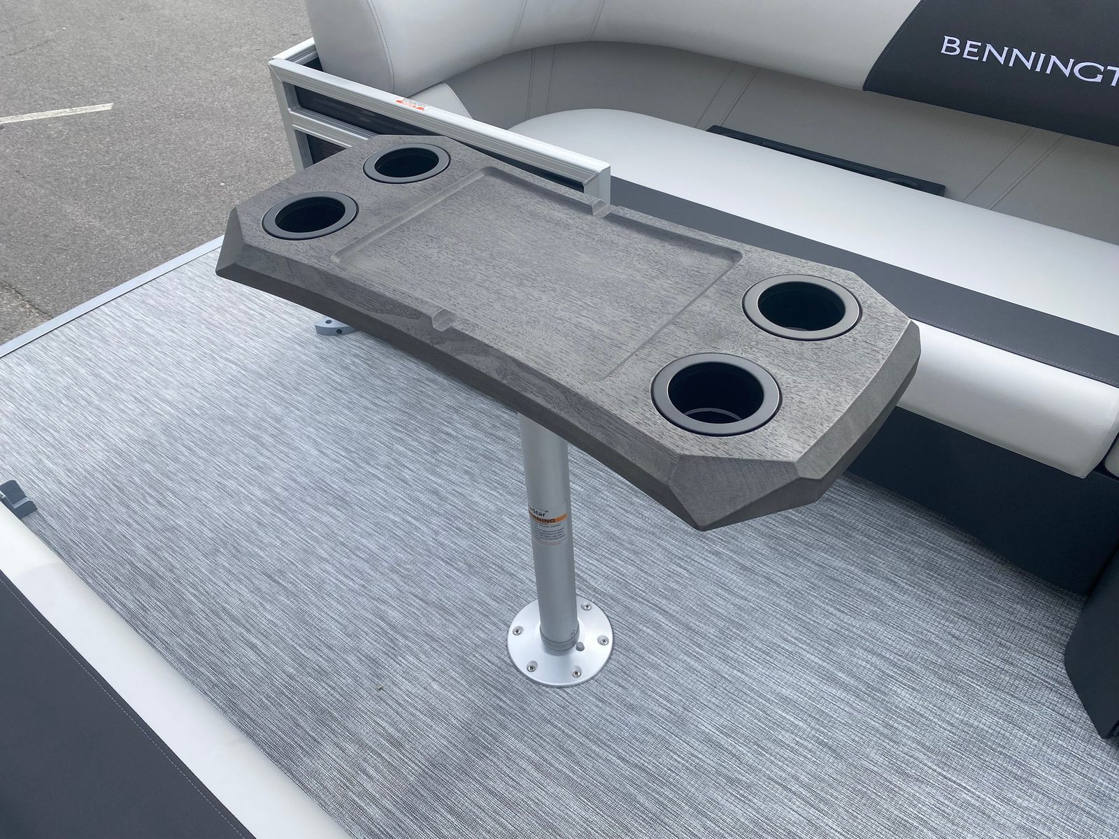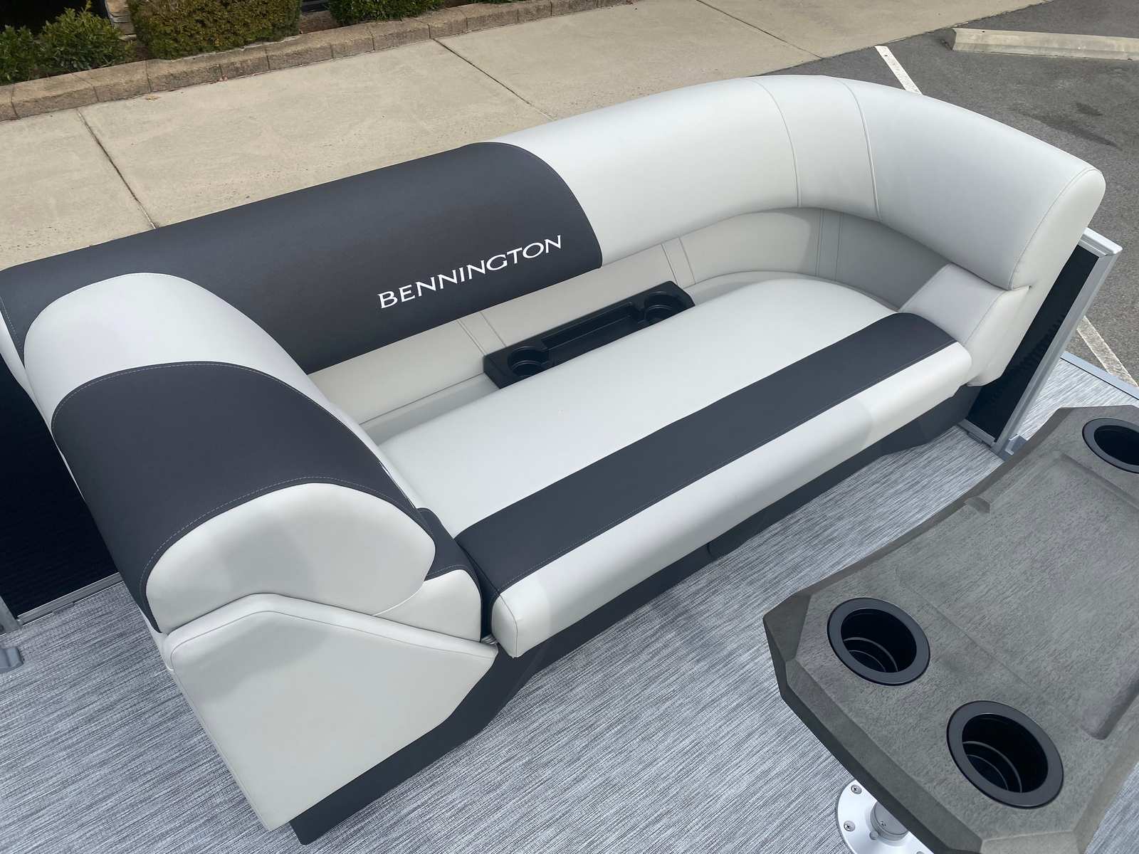 This Bennington pontoon boat shines in a variety of scenarios, making it the perfect choice for families, friends, and boating enthusiasts alike. Picture a sunny afternoon spent exploring your favorite lake, with plenty of space for everyone to relax and enjoy the ride. The ski tow bar invites adventure, letting you pull wakeboarders or tubers for hours of excitement. For those who prefer a more tranquil experience, the comfortable seating and stylish accents create an inviting setting for sunset cruises, picnics, or stargazing. The wireless charger keeps your devices ready for music, photos, and navigation, ensuring every outing is seamless and enjoyable.