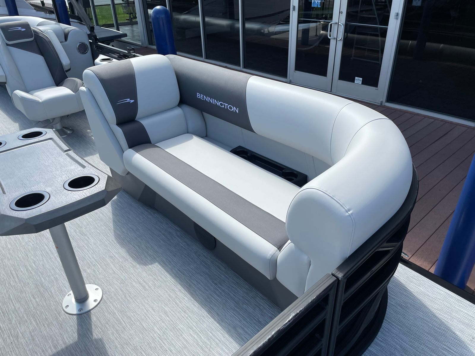 Imagine spending weekends with family and friends, cruising across the lake in your new Bennington 22 SSR SPS pontoon boat. The spacious deck is perfect for hosting picnics, celebrating special occasions, or simply relaxing in the sun. Water sports enthusiasts will appreciate the ski tow bar, which makes it easy to enjoy wakeboarding, tubing, or skiing. The bimini provides shade for those who want to escape the heat, while the wireless charger keeps everyone connected and entertained.This pontoon boat is equally suited for quiet mornings fishing, leisurely sunset cruises, or lively gatherings with loved ones. Its versatile design and premium features make it an excellent choice for anyone seeking a blend of comfort, performance, and style. Whether you’re a seasoned boater or new to the water, the Bennington 22 SSR SPS offers an inviting and enjoyable platform for all your adventures.