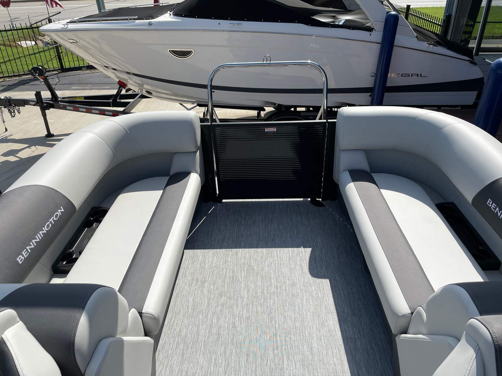 The 2025 Bennington 22 SSR SPS pontoon boat for sale is a standout choice for those seeking luxury, performance, and versatility on the water. With its powerful Yamaha VF150XB engine, blackout luxe package, ski tow bar, bimini, and wireless charger, this boat is designed to deliver unforgettable experiences for you and your guests. The spacious layout, stylish accents, and practical features make it an ideal option for family outings, water sports, and relaxing getaways.Don’t miss your chance to own a new Bennington boat for sale that combines cutting-edge design with exceptional comfort and performance. Contact your local dealer today to learn more about the Bennington 22 SSR SPS and start planning your next adventure on the water.