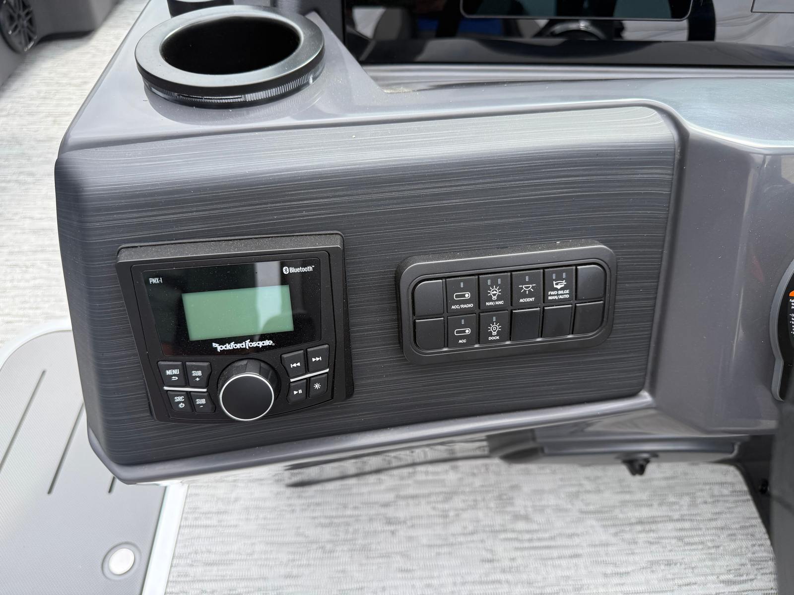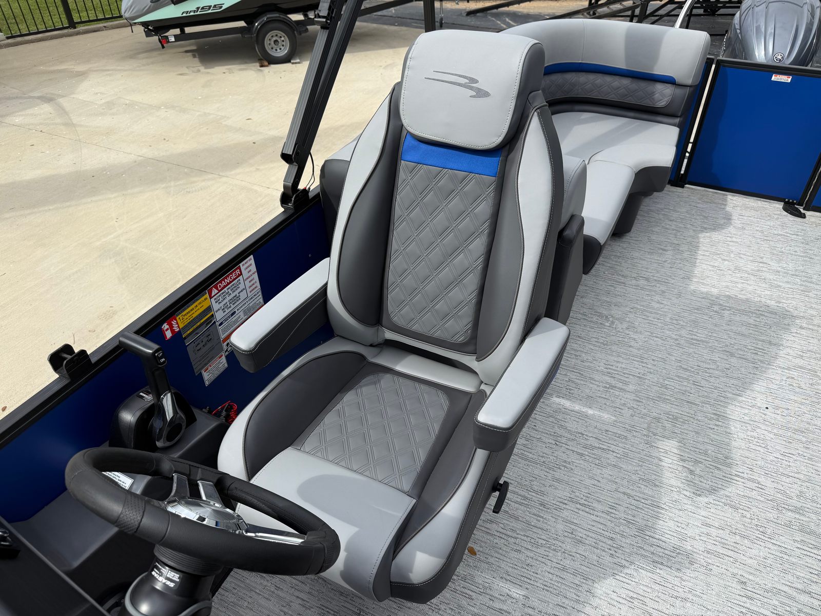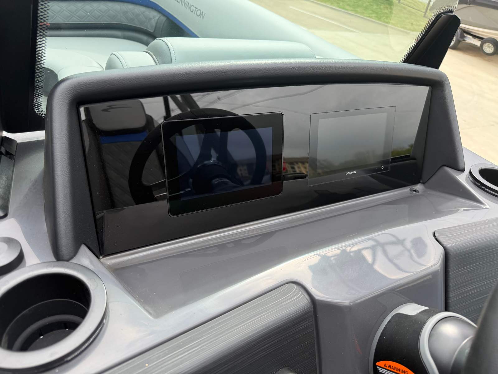 The Bennington 22 SSR SPS is packed with features that elevate your boating experience. Its spacious deck layout offers ample room for lounging, socializing, and entertaining. The plush seating is designed for maximum comfort, allowing you and your guests to relax in style. High-quality materials and finishes are used throughout, reflecting Bennington’s commitment to luxury and durability.The pontoon’s thoughtful design includes easy access points for boarding and disembarking, as well as strategically placed storage compartments to keep your gear organized and out of the way. The helm is equipped with intuitive controls, ensuring the captain has everything needed for a smooth and enjoyable ride. Every detail, from the railings to the flooring, is crafted to enhance your time on the water.