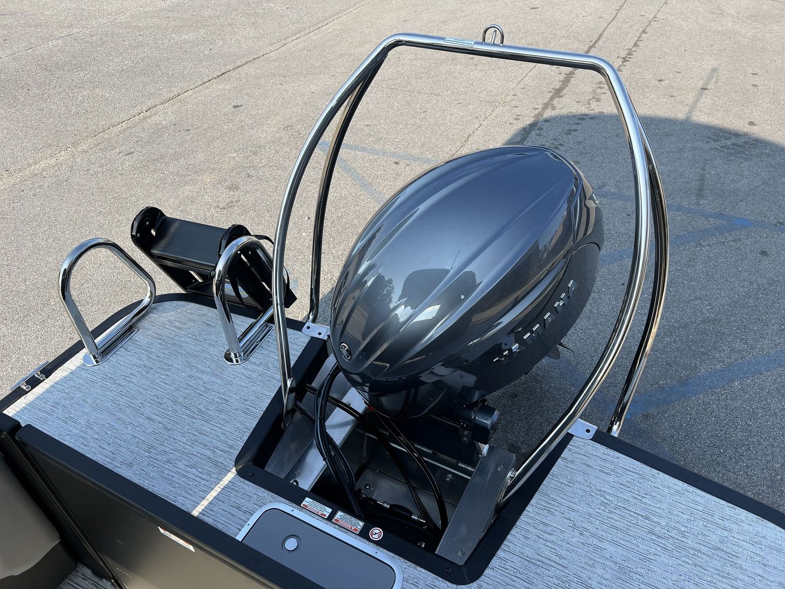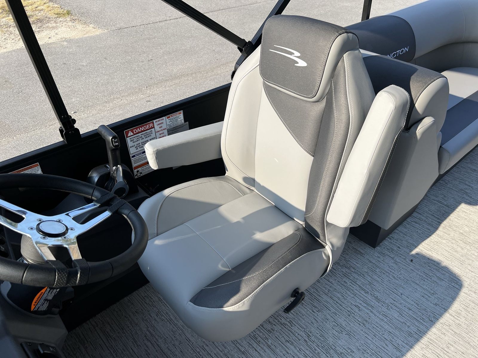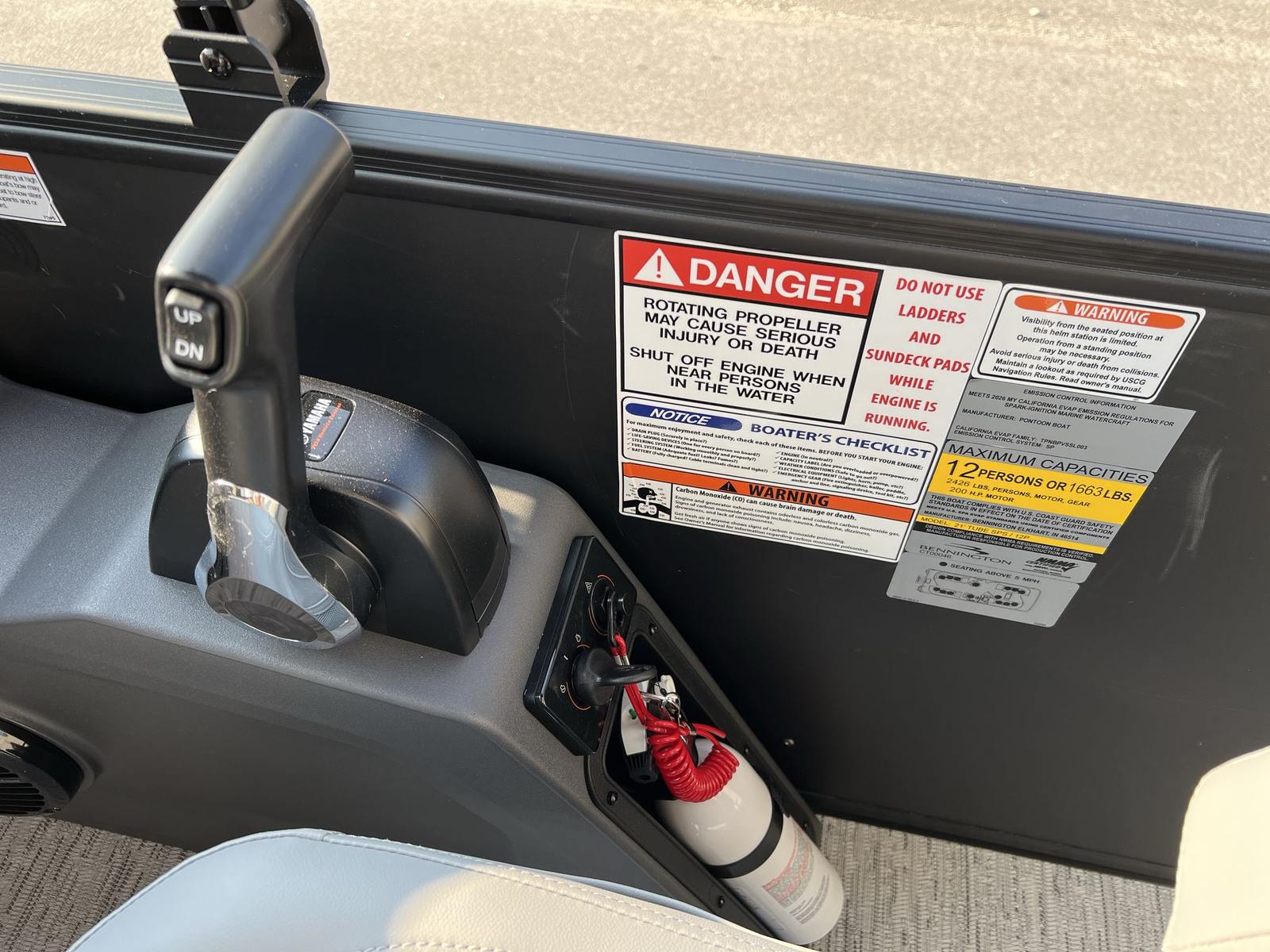 The Bennington 22 SSR SPS is loaded with special features that enhance both style and functionality. The Serene Soft Touch Vinyl with Simtex Accents provides a luxurious, comfortable seating experience, while the Accent in Smooth Metallic Silver and Canvas in Midnight Black create a striking visual appeal. The Shadow Grey and Ironwood Dash Accent add a touch of sophistication to the helm, making every journey feel upscale.For added convenience, the boat is equipped with a single switch battery system, ensuring reliable power management throughout your adventures. The wireless charger (S) keeps your devices powered up, so you can capture every moment or stay connected while on the water. The windscreen offers protection from the breeze, enhancing comfort for the captain and passengers alike.Watersports enthusiasts will appreciate the ski tow bar (Ext. Aft Deck no Rub Rail), which makes it easy to enjoy tubing, wakeboarding, or skiing with friends and family. Every detail of this pontoon is designed to maximize enjoyment and ease of use, making it a standout option for those seeking a Bennington boat for sale.