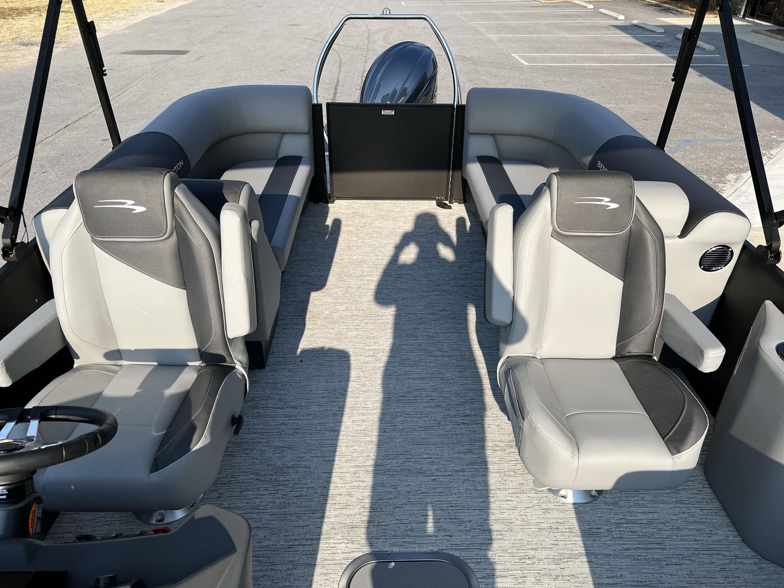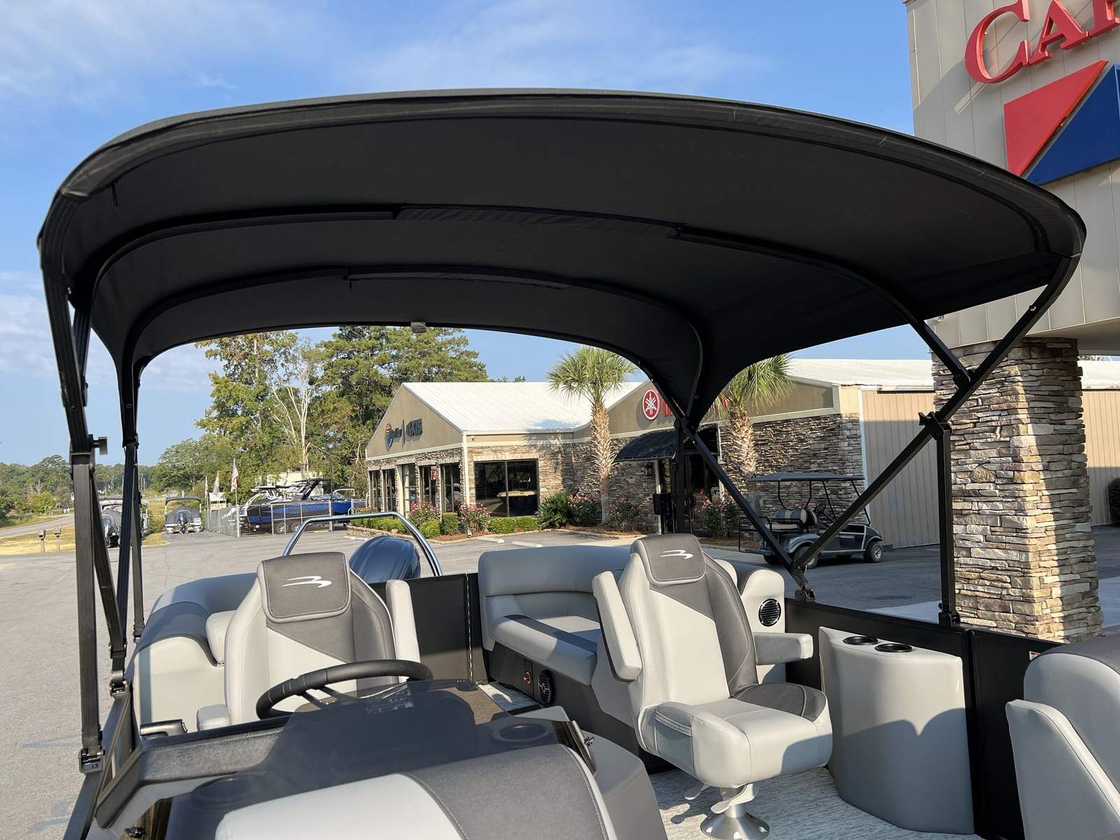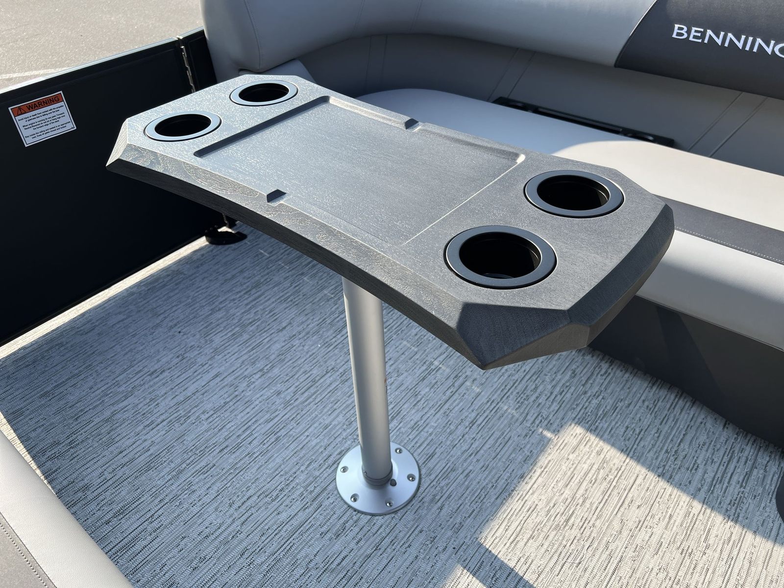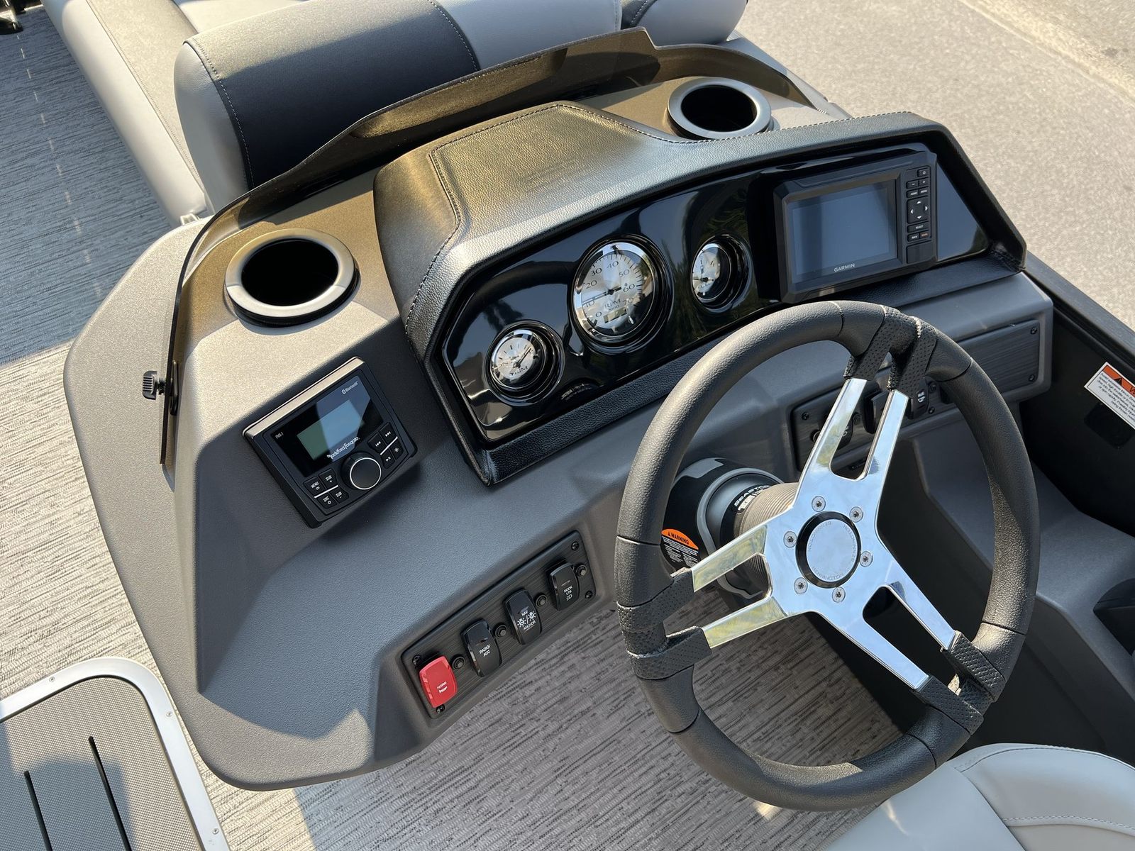 The Bennington 22 SSR SPS is loaded with special features that enhance both style and functionality. The Serene Soft Touch Vinyl with Simtex Accents provides a luxurious, comfortable seating experience, while the Accent in Smooth Metallic Silver and Canvas in Midnight Black create a striking visual appeal. The Shadow Grey and Ironwood Dash Accent add a touch of sophistication to the helm, making every journey feel upscale.For added convenience, the boat is equipped with a single switch battery system, ensuring reliable power management throughout your adventures. The wireless charger (S) keeps your devices powered up, so you can capture every moment or stay connected while on the water. The windscreen offers protection from the breeze, enhancing comfort for the captain and passengers alike.Watersports enthusiasts will appreciate the ski tow bar (Ext. Aft Deck no Rub Rail), which makes it easy to enjoy tubing, wakeboarding, or skiing with friends and family. Every detail of this pontoon is designed to maximize enjoyment and ease of use, making it a standout option for those seeking a Bennington boat for sale.