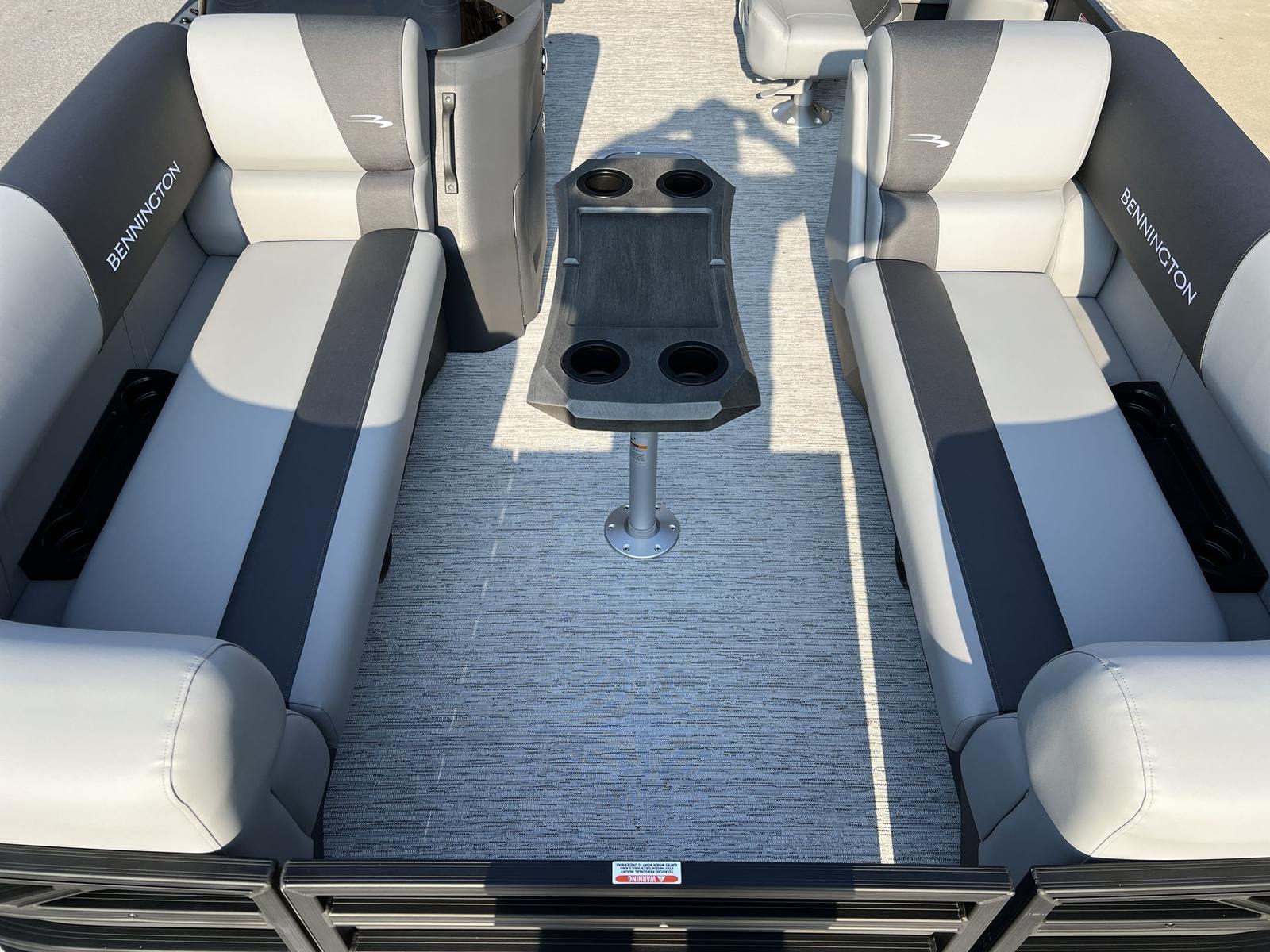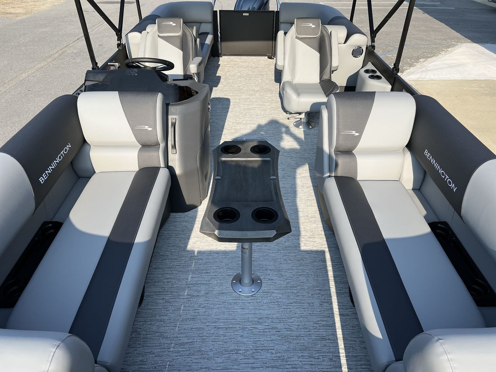 The 2026 Bennington 22 SSR SPS is a nearly 23-foot pontoon boat that perfectly balances spaciousness and maneuverability. Its generous length of 22.92 feet provides ample room for guests, gear, and activities, while its thoughtfully designed layout ensures everyone on board enjoys comfort and convenience. As a new model, this Bennington boat for sale offers the latest in pontoon innovation, with premium materials and attention to detail evident throughout its construction.