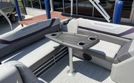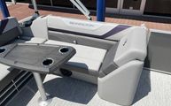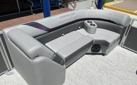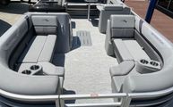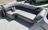 Features and SpecificationsThe 2025 Bennington 22 Sxsb SPS is loaded with special features that set it apart from other pontoon boats for sale. The portable armrest with stainless steel cup holders adds a touch of convenience and luxury, ensuring your favorite beverages are always within reach. Rub rail protectors safeguard the boat’s exterior, preserving its pristine appearance even after frequent docking.For those who love to set the mood, the RGB toe kick lighting and RGB controller SX allow you to customize the ambiance with vibrant, color-changing lights. The Rockford Fosgate M1 lighted speakers not only deliver premium sound quality but also enhance the atmosphere with synchronized lighting effects, making every outing feel like a celebration.The interior is adorned with Zebrawood Matte Slate accents and dimensional brushed silver logos, creating a modern and sophisticated look. Silver Simtex upholstery offers both durability and comfort, ensuring that every seat is as inviting as it is stylish. These thoughtful details make the Bennington 22 Sxsb SPS a true standout in the world of luxury pontoons.