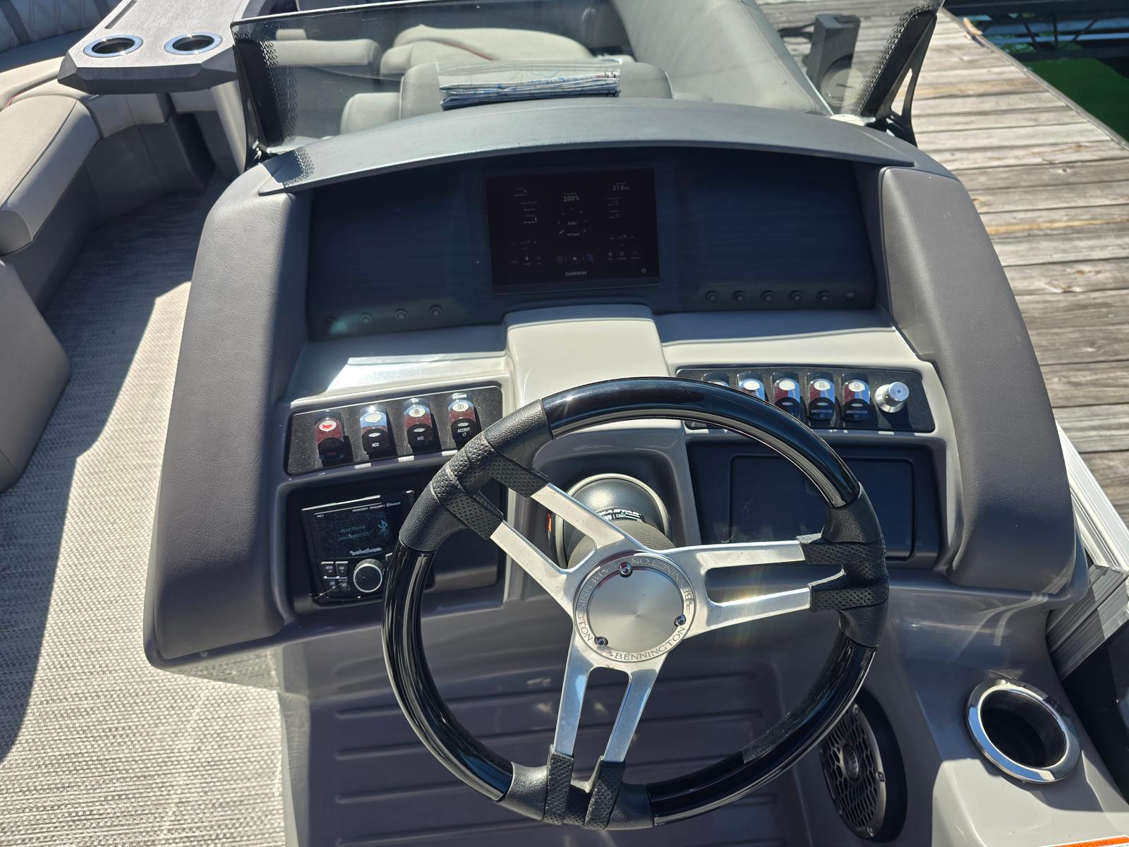 Powering this Bennington pontoon is a robust 250-horsepower engine, delivering impressive acceleration and smooth cruising capabilities. With only 100 engine hours, the motor is in excellent condition, promising reliability and plenty of life for future adventures. Whether you’re gliding across calm waters or picking up speed for watersports, the 23 Lxsfb’s performance is both exhilarating and efficient. The single-engine setup simplifies maintenance and maximizes fuel efficiency, making every outing enjoyable and worry-free.