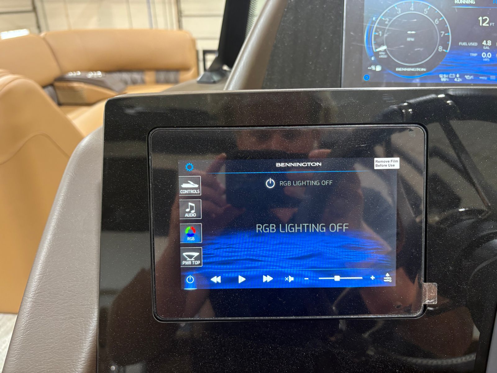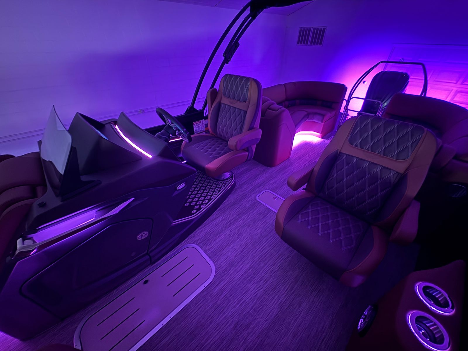 Step aboard the Bennington 23 RFB ESP and discover a world of premium features designed to enhance every moment on the water. Enjoy the ambiance created by illuminated cupholders (eight in total), exterior side lighting, underwater lighting, and toekick lights (2-37' and 2-62'), which add a touch of elegance and safety during evening cruises. The blackout logos and electric power top curved Bimini in sleek black not only provide shade but also elevate the boat’s modern aesthetic.Music lovers will appreciate the Rockford Fosgate audio system, featuring four 6.5" M2 speakers, two 8" M2 speakers (Fastback), a 10" M2 subwoofer, and a dual PM Punch amplifier upgrade. Whether you’re hosting a party or relaxing with a good book, the sound quality is sure to impress. The interior is adorned with Zebrawood Matte Beige accents, creating a sophisticated and inviting atmosphere for you and your guests.