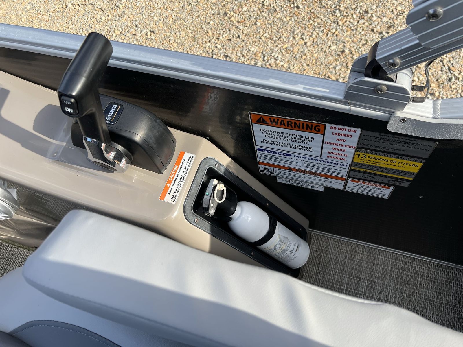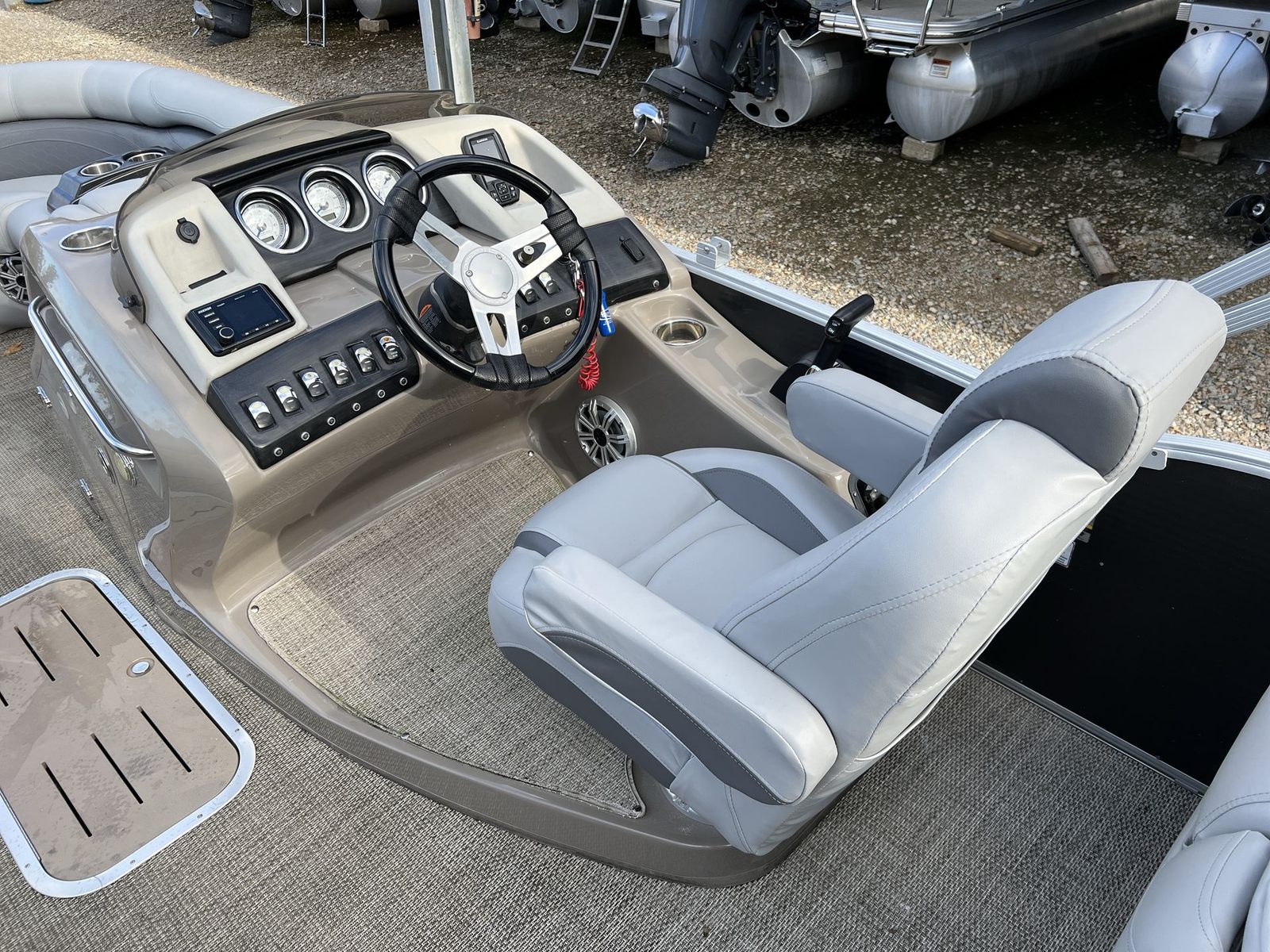 Powered by a single engine boasting 175 horsepower, the Bennington 23 RFB delivers impressive performance for a pontoon of its class. The engine’s robust power ensures smooth acceleration and responsive handling, making it easy to navigate through various water conditions. Whether you are cruising at a leisurely pace or picking up speed for watersports, the 175 HP engine provides the versatility and reliability you need. With just 80 hours on the engine, you can trust in its longevity and continued performance for seasons to come.