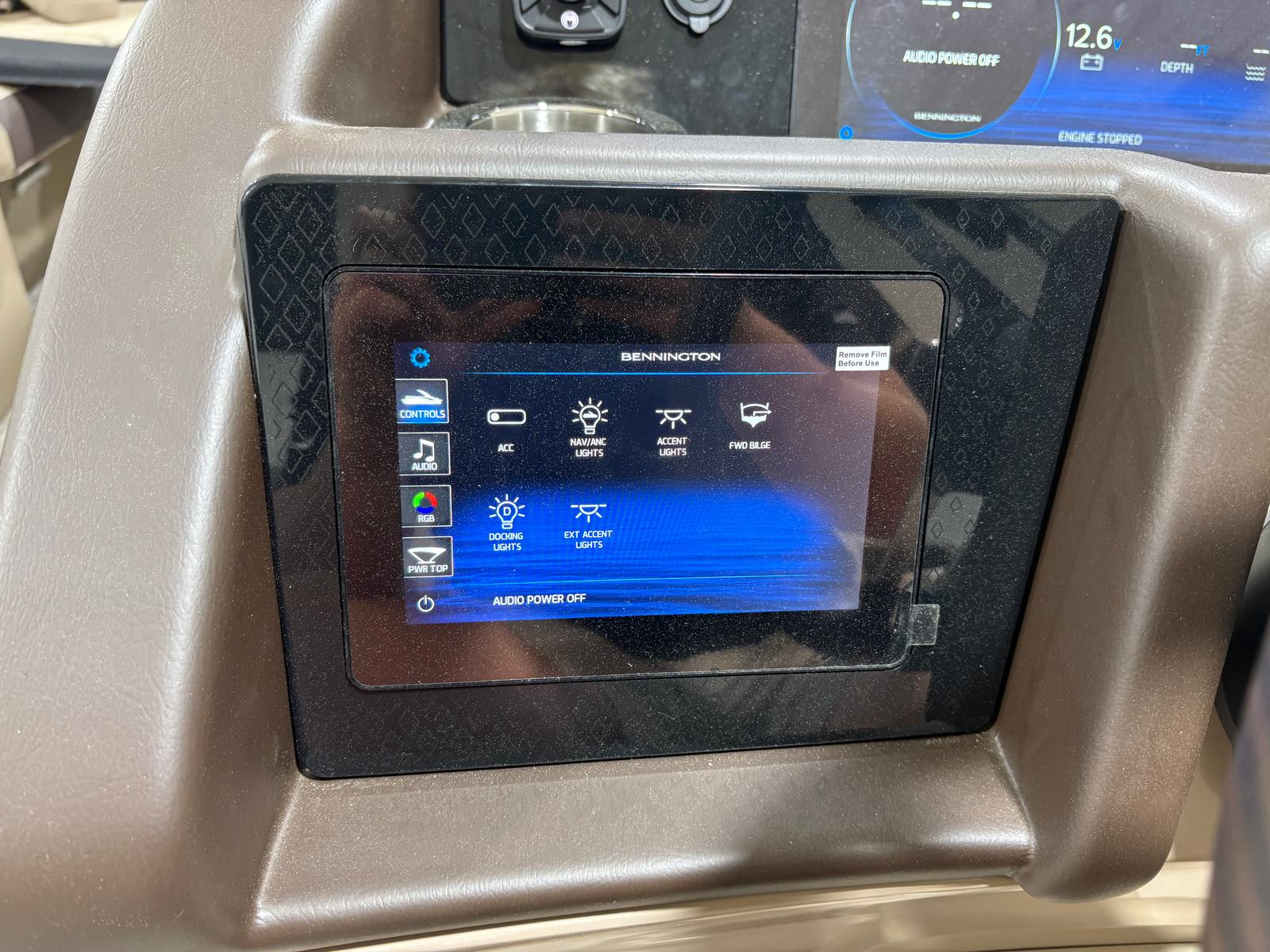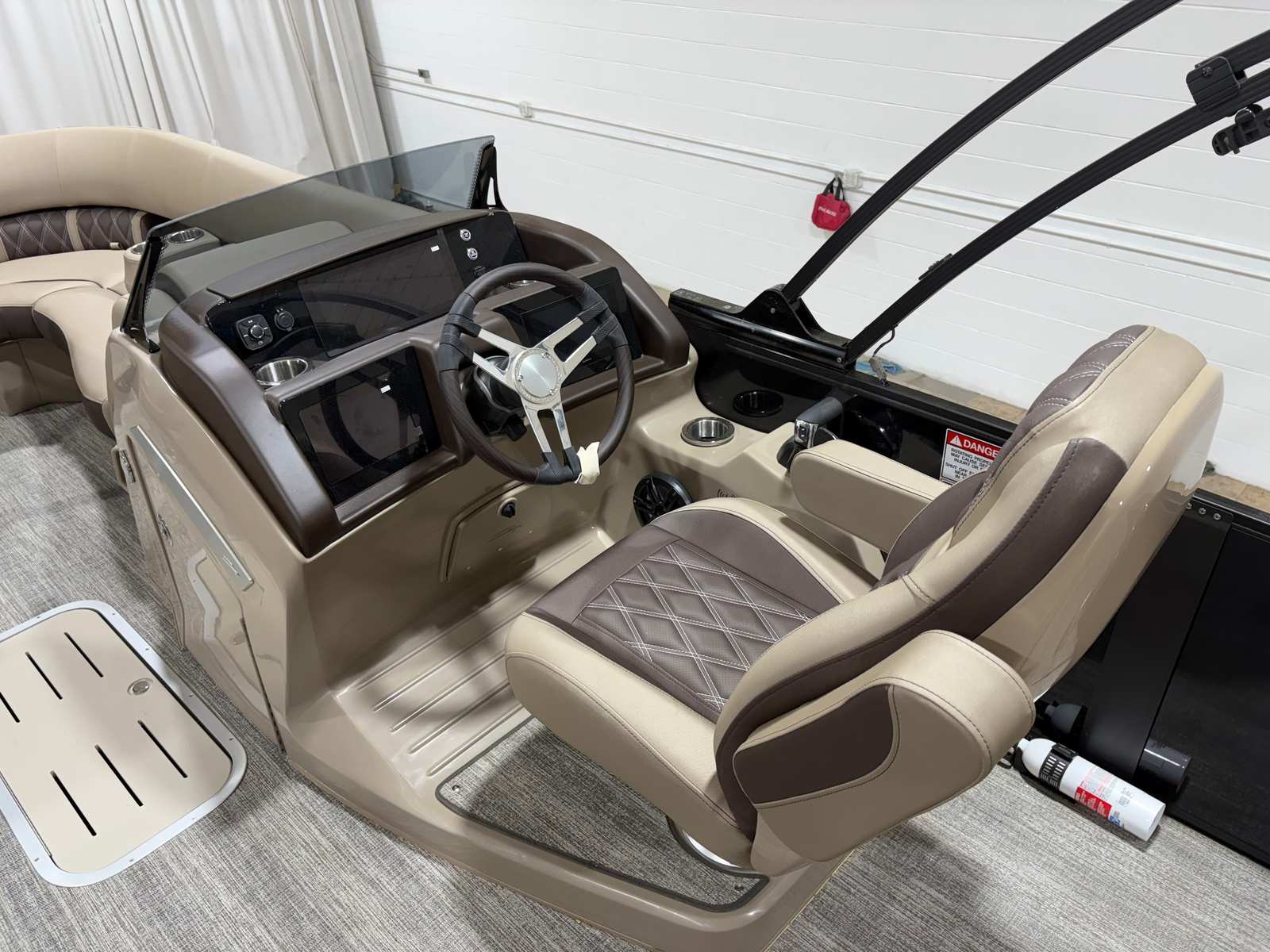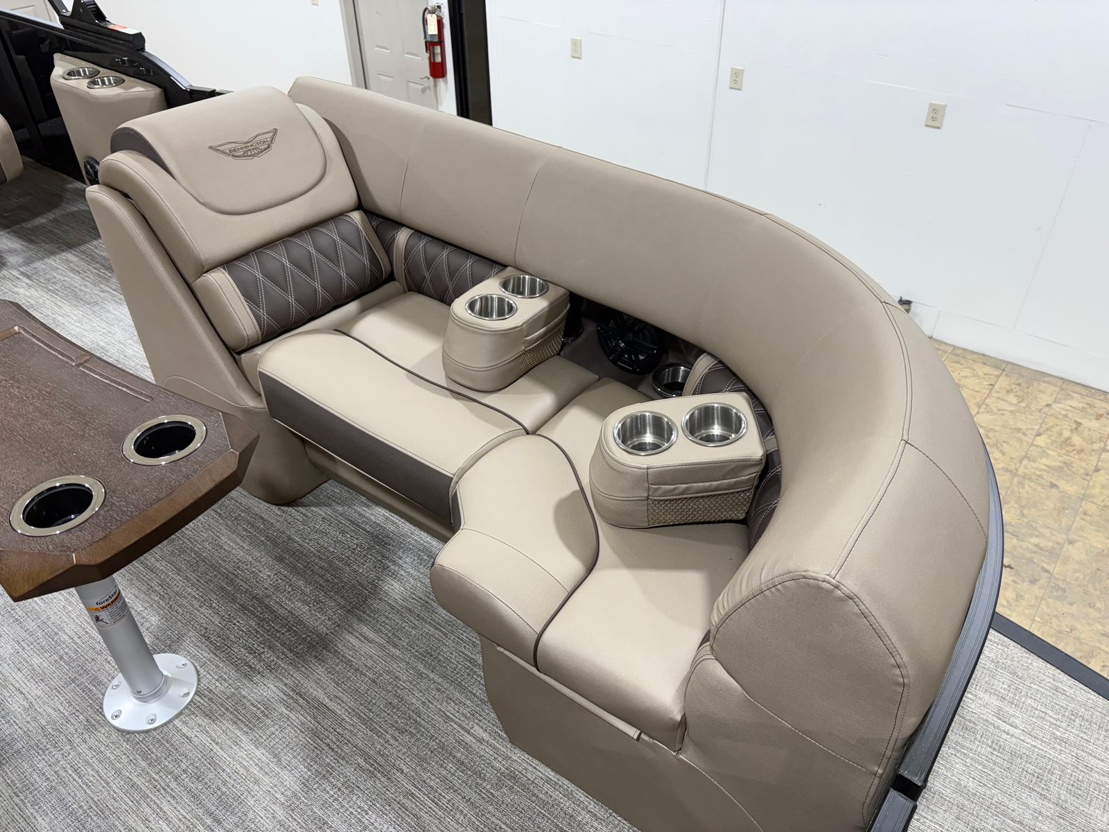 This Bennington boat for sale is loaded with special features designed to elevate your boating experience. The Bow Pop-Up Cleats offer convenient and secure docking, while the Elevated Console Platinum provides enhanced visibility and a commanding view of your surroundings. Exterior Side Lighting not only adds a touch of elegance but also improves safety during evening cruises. The Accent - Smooth Gemini Black finish gives the pontoon a sleek, modern look that is sure to impress.Inside, the Stowable Sculpted Rectangular Table Upgrade creates the perfect setting for onboard dining or socializing, and the Battery: Power Distribution Panel ensures reliable power management for all your electronic needs. The Shoreline Taupe color scheme exudes sophistication and blends seamlessly with the natural beauty of your favorite waterways. The Swingback Plus LX (Co-Captain Seat) offers flexible seating arrangements, allowing you and your guests to relax in style. For those who love water sports, the Ski Tow Bar (Ext. Aft Deck with Rub Rail) makes it easy to enjoy tubing, skiing, or wakeboarding. The Stainless Steel Keeper Rail adds an extra layer of safety and durability, ensuring peace of mind for you and your passengers.