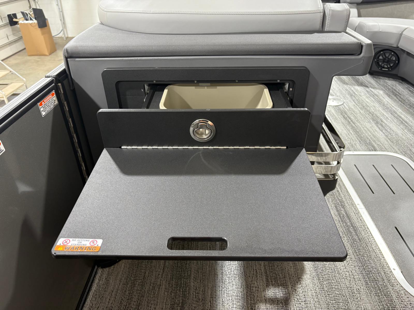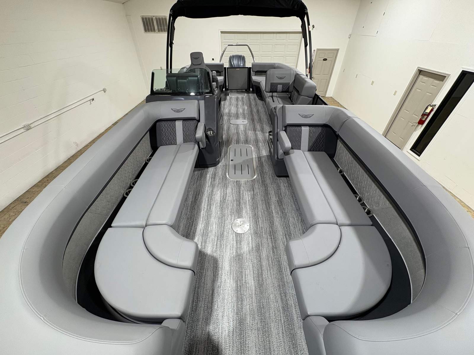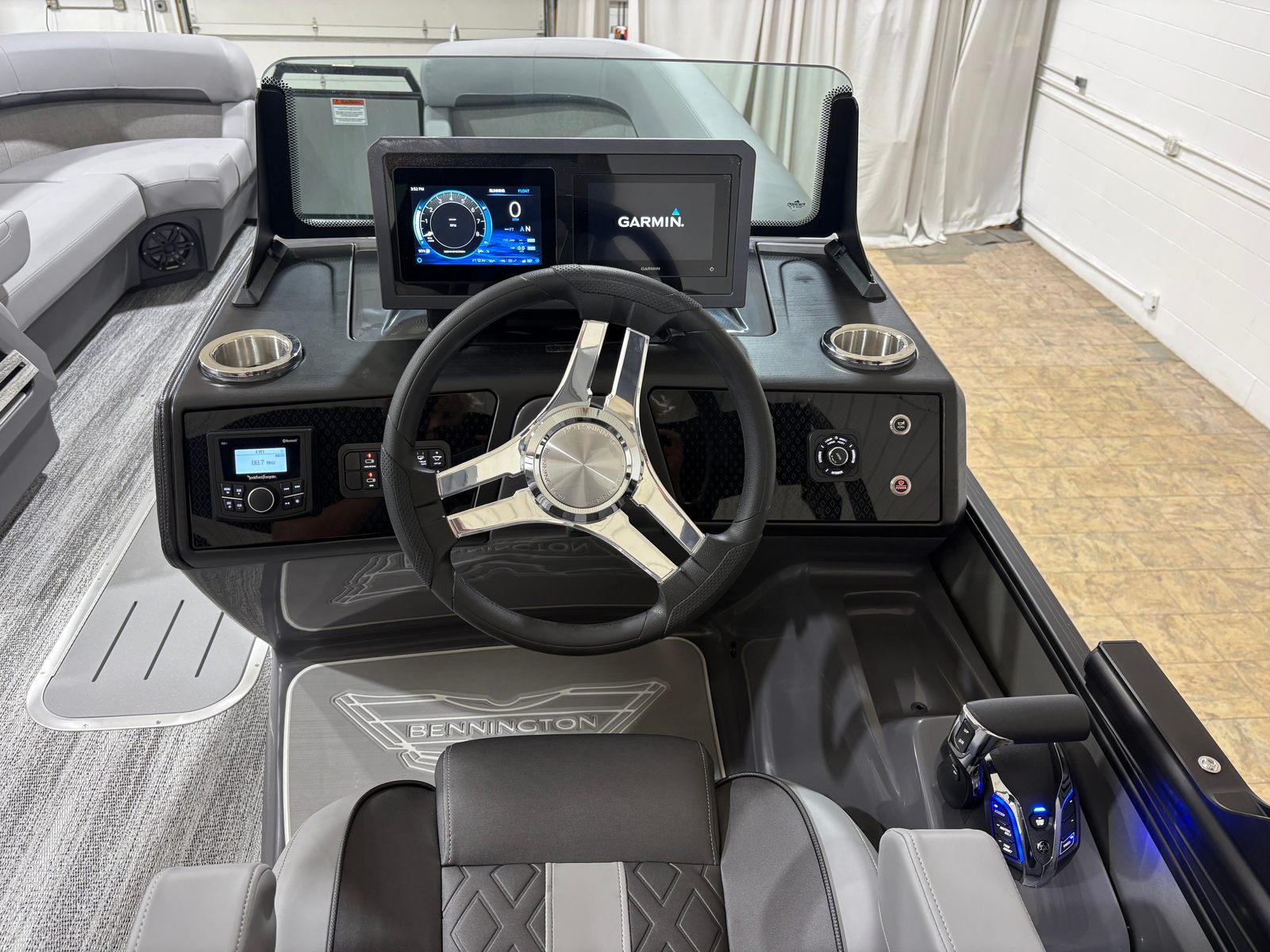 In summary, the 2026 Bennington 24 MFB ESP is a standout pontoon boat for sale that combines powerful performance, luxurious features, and exceptional versatility. With its 250-horsepower engine, elevated console, electric power top, striking exterior lighting, and stylish interior accents, this Bennington boat for sale is designed to impress and built to last. The thoughtful layout and premium amenities ensure every outing is comfortable, enjoyable, and memorable.If you are ready to elevate your time on the water and experience the ultimate in pontoon luxury, the Bennington 24 MFB ESP is the perfect choice. Discover the difference that quality craftsmanship and innovative design can make—contact your local dealer today to learn more about this remarkable pontoon boat and start planning your next adventure.