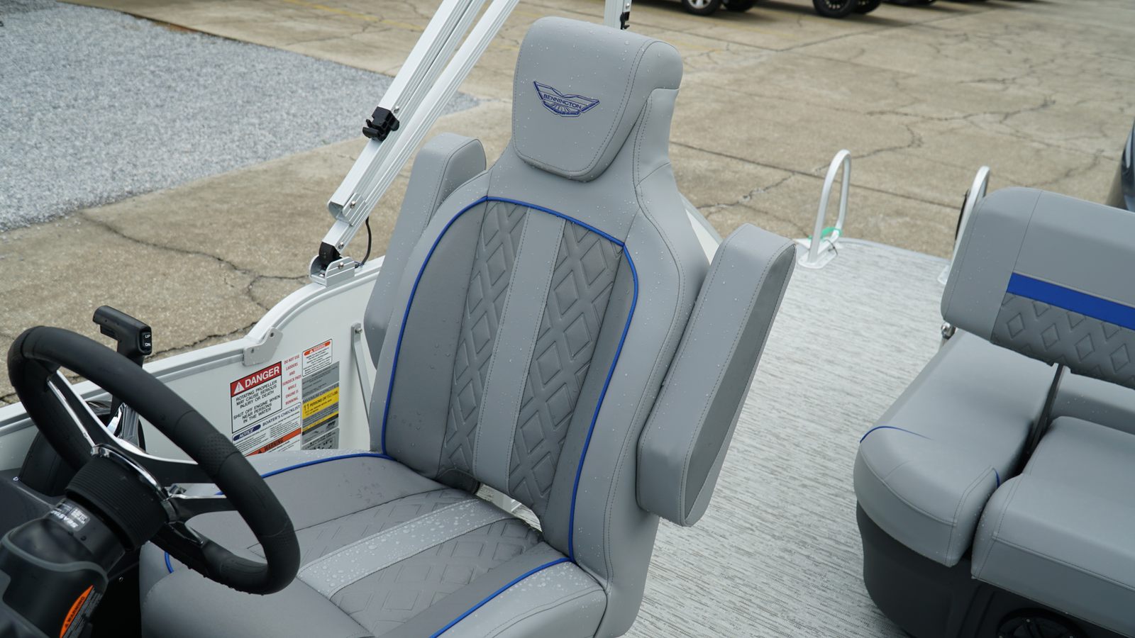 The Bennington 24 MSB ESP is loaded with features designed to enhance your on-water experience. The dual switch battery system with fuse provides peace of mind and reliable power management, ensuring your boat is always ready for action. Toekick lights (2-62") add a touch of ambiance and safety during evening cruises, creating a welcoming atmosphere for you and your guests.For music lovers, the Rockford Fosgate M2 Speaker Amplifier Upgrade and six Rockford Fosgate M1 Lighted Speakers deliver crystal-clear sound and vibrant lighting, transforming your pontoon into a floating entertainment hub. The elevated console with Pocket Mythos offers enhanced visibility and ergonomic controls, while the base furniture from the M Series ensures comfort and style throughout the deck. The elegant Zebrawood Matte Slate accents add a sophisticated touch, making this pontoon boat as visually appealing as it is functional.
