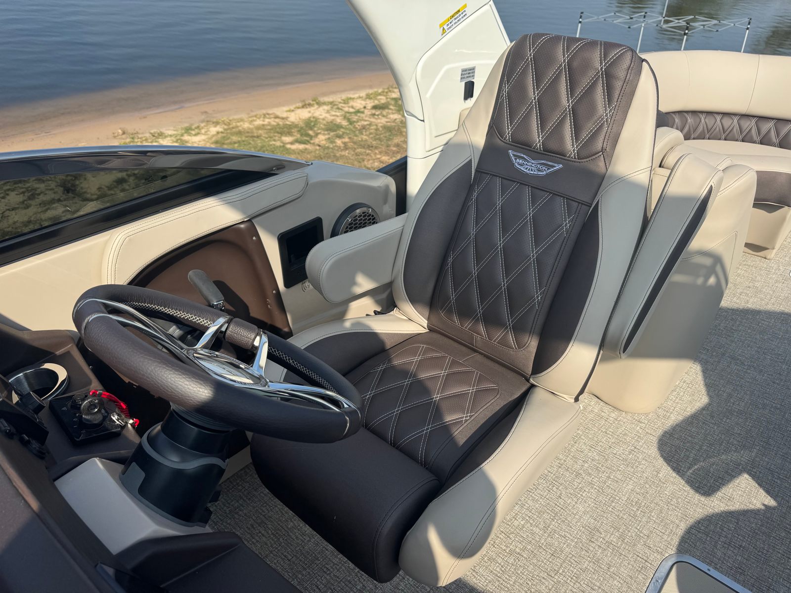 Step aboard the Bennington 25 Qfbwa ESP and discover a world of luxury and innovation. The special features of this pontoon boat are designed to enhance your time on the water, offering both style and functionality. The Removable Flag Pole with American Flag adds a patriotic touch, perfect for holiday celebrations or everyday pride. Enjoy a vibrant atmosphere with RGB Toe Kick Lighting and Illuminated Cupholders, creating a dynamic ambiance for evening cruises and social gatherings.Underwater Lighting not only adds a dramatic flair but also improves visibility during nighttime adventures. The Blackout Logos give the boat a sleek, modern look, while the Panel - Smooth Metallic Sorre finish provides a sophisticated aesthetic that turns heads at every marina. For music lovers, the Rockford Fosgate audio system is a true highlight. Featuring 6.5" M2 Speakers, 8" M2 Speakers, a powerful 10" M2 Subwoofer, and Dual PM Punch Amplifier Upgrade, this setup delivers crystal-clear sound and deep bass throughout the boat. The Rockford Fosgate PMX-1R Head Unit Remote with Sirius Satellite Radio ensures you have access to your favorite tunes and channels, making every journey more enjoyable.
