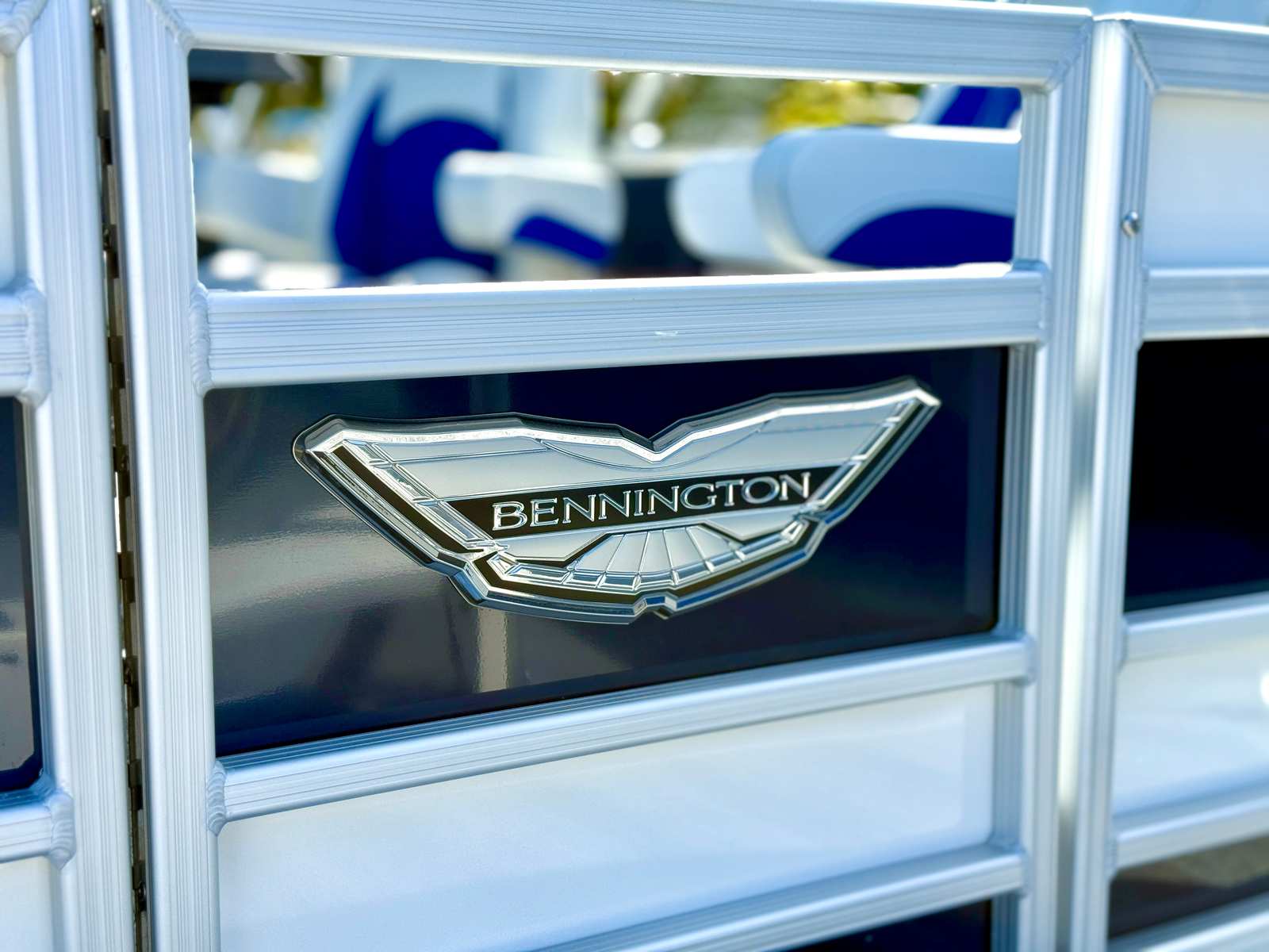 The 2026 Bennington 25 RFB ESP stretches an impressive 25.33 feet in length, offering ample space for entertaining, lounging, and enjoying the open water. As a brand-new pontoon, it boasts the latest advancements in marine technology and design, ensuring a modern and reliable boating experience. The sleek exterior is complemented by dimensional chrome logos, giving the boat a distinctive and upscale appearance that will turn heads at any marina or lakeside dock.