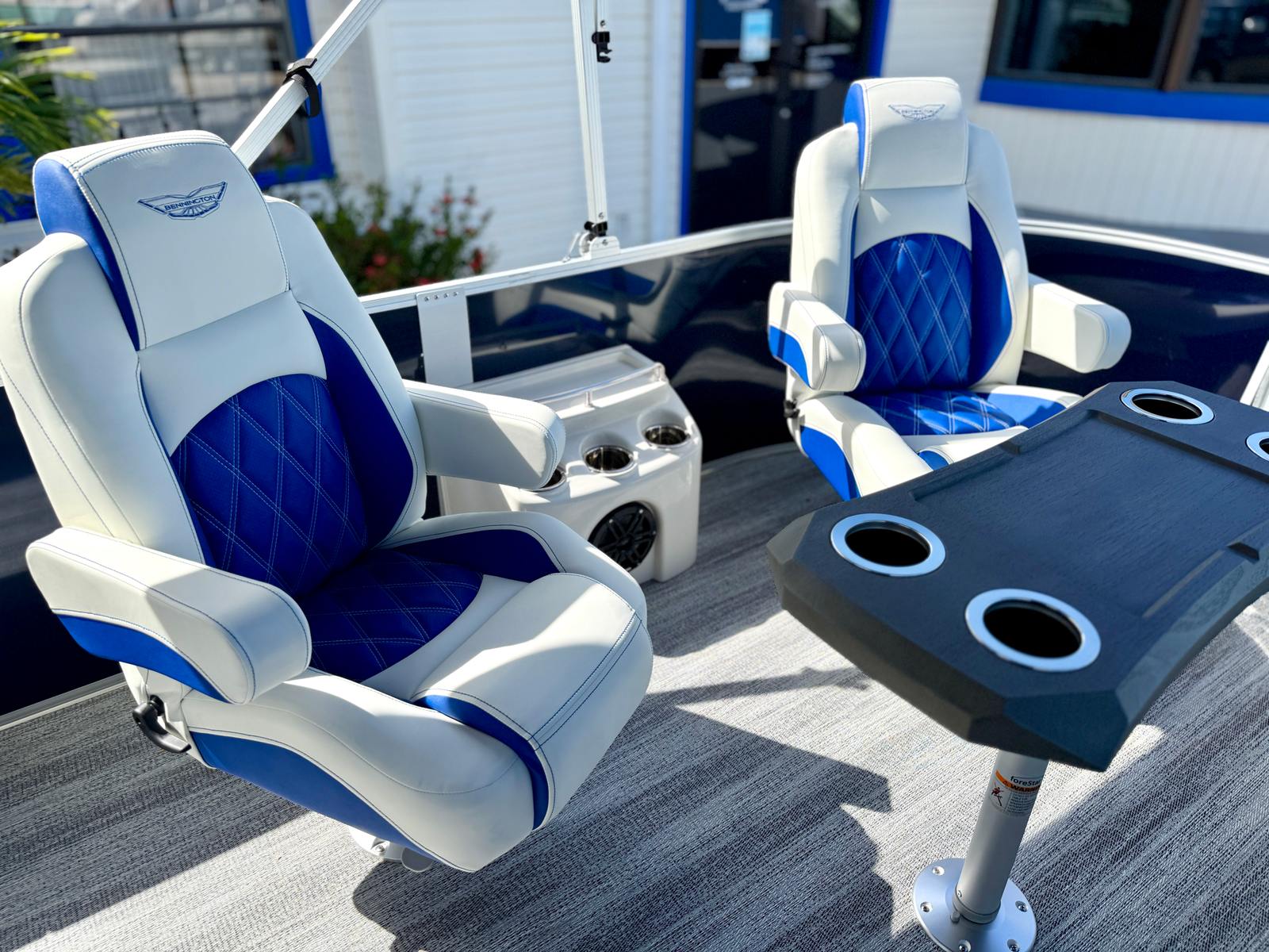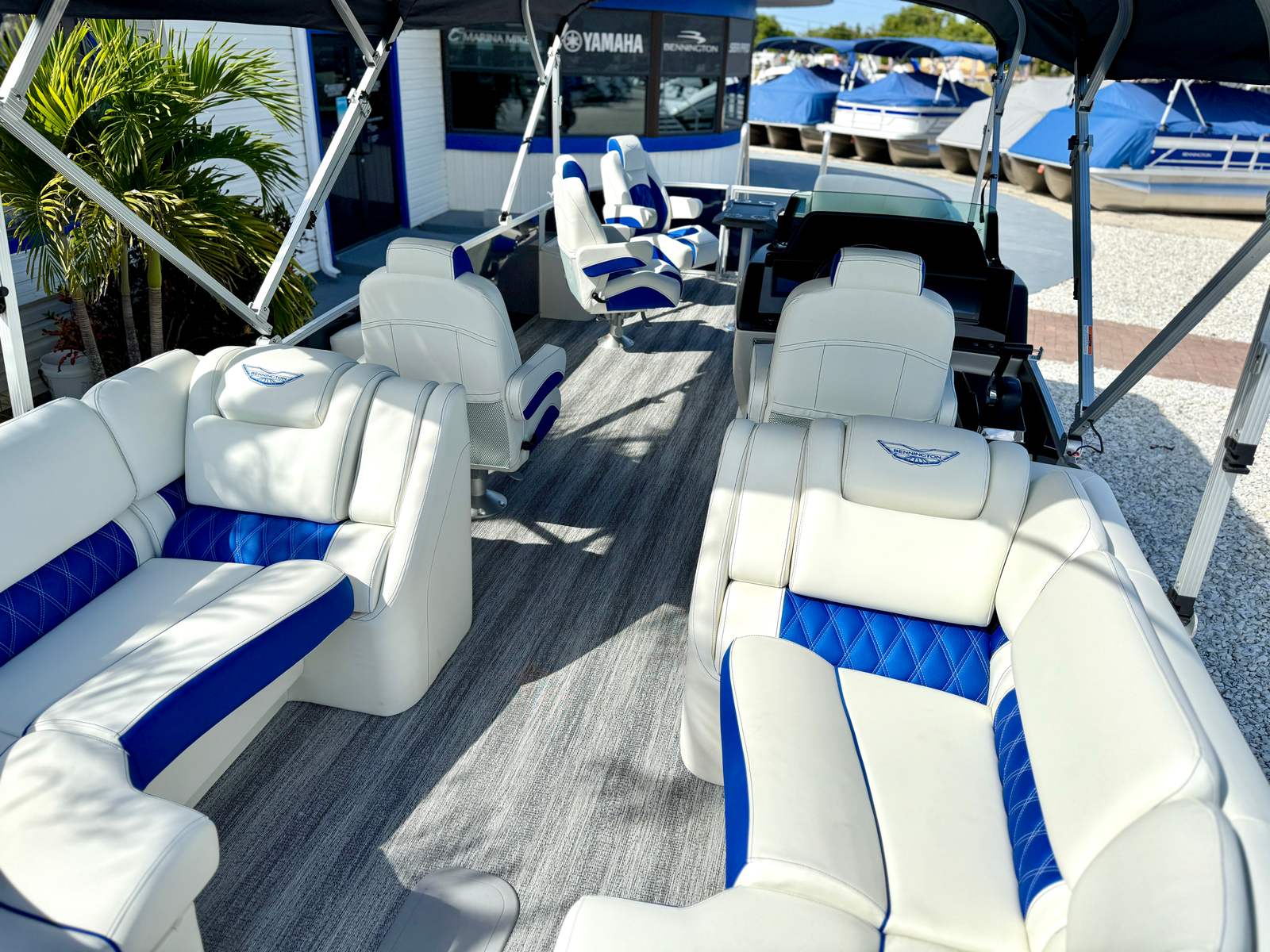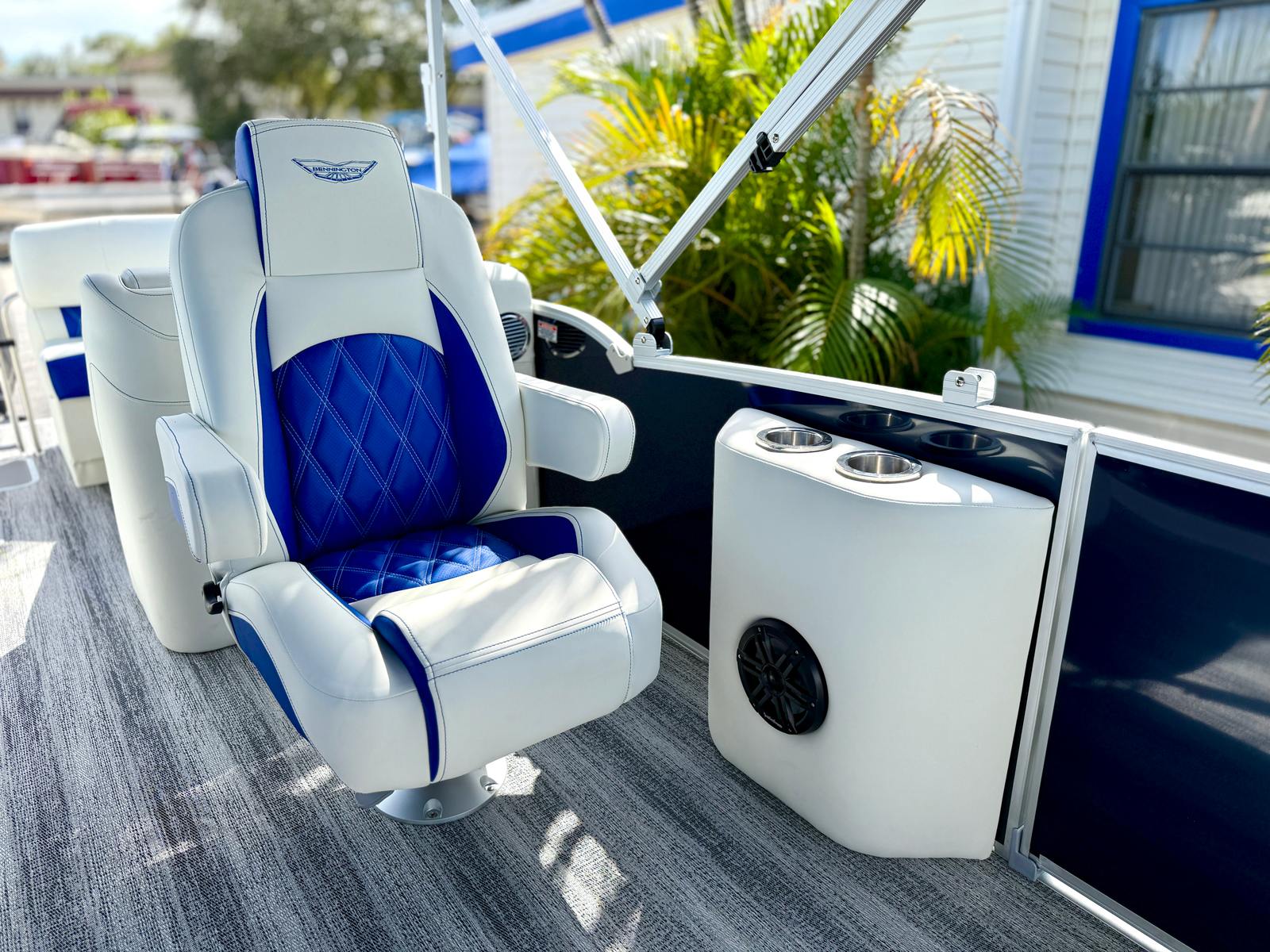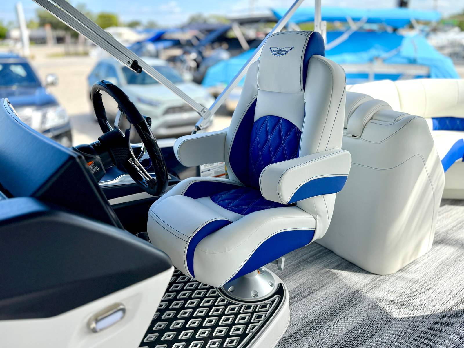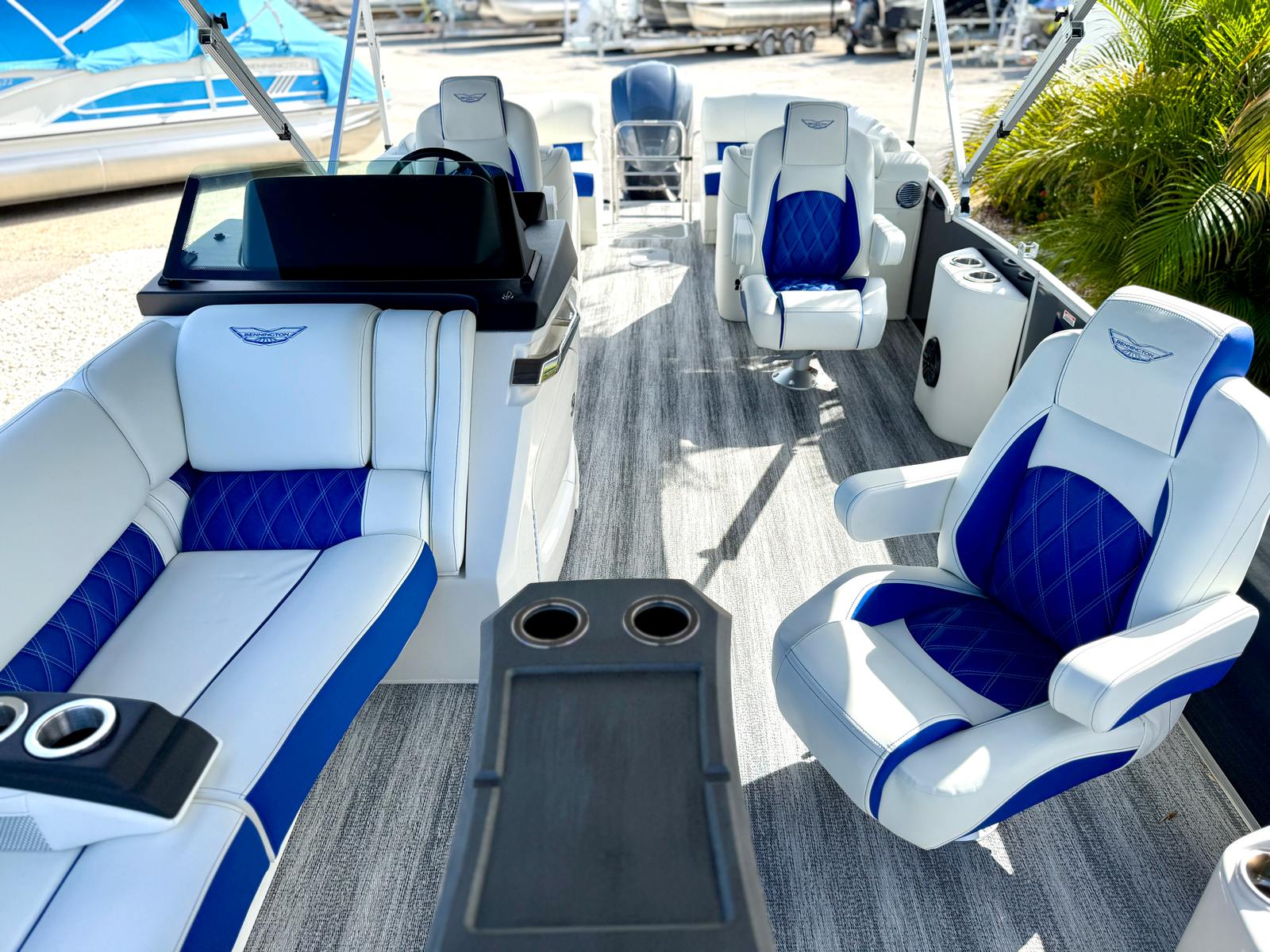At the heart of this Bennington pontoon is a powerful 300 HP 4 Stroke V6 25 IN engine, delivering robust performance and smooth acceleration for a thrilling ride. The Yamaha Mechanical Pre-Rig ensures seamless integration and reliable operation, while the advanced steering system with power hydraulic assist provides effortless maneuverability, even in tight spaces or challenging conditions. Whether you are cruising at a leisurely pace or powering across the water, the 25 RFB ESP offers a responsive and exhilarating driving experience that sets it apart from other pontoon boats for sale.