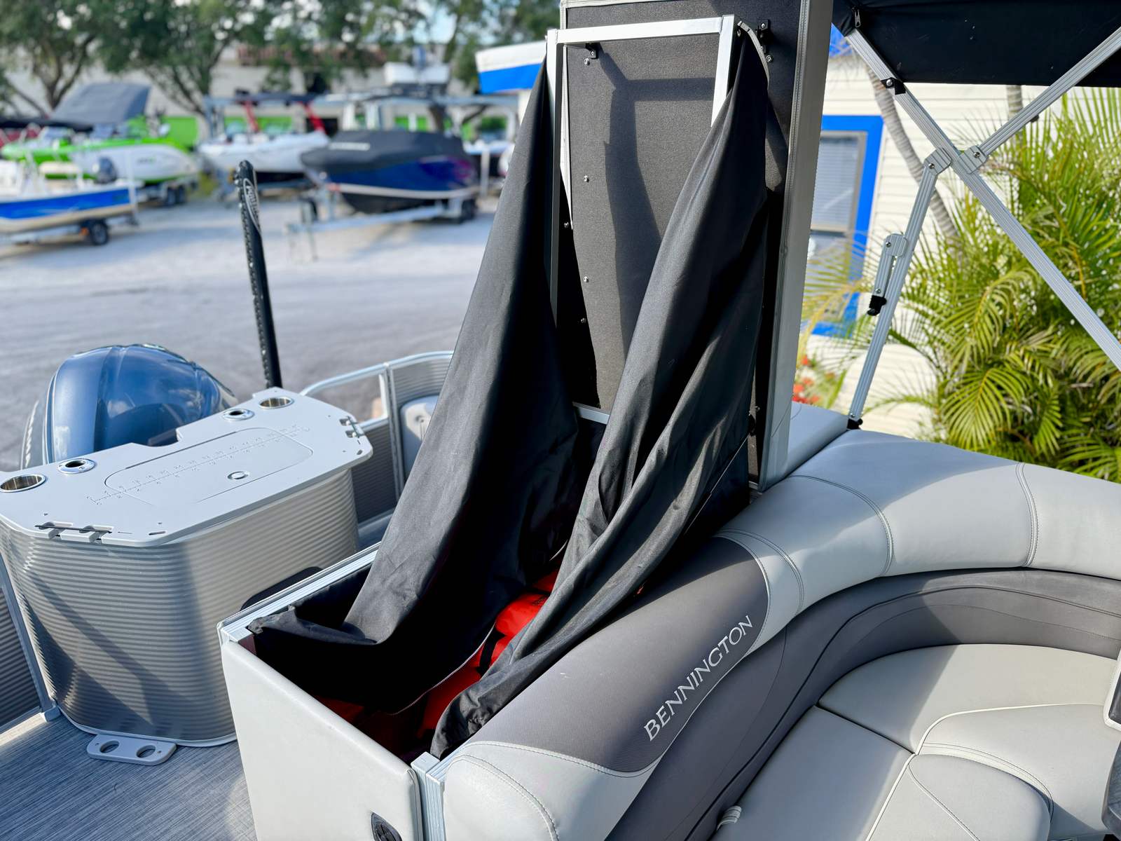The Bennington 25 RFB is designed with practicality in mind, making ownership easy and enjoyable. Its ample storage options allow you to stow away gear, snacks, and personal items, keeping the deck clutter-free and organized. The efficient engine provides excellent fuel economy, so you can spend more time on the water and less time refueling. Docking and maneuvering are a breeze thanks to the responsive handling and well-balanced design, making it simple to navigate marinas and tight spaces. Maintenance is straightforward, and the boat’s reputation for reliability means you can focus on enjoying your adventures without worry.