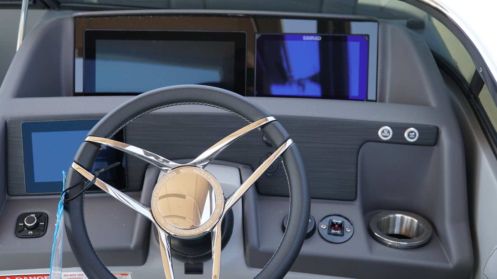 The Bennington 25 Rfbwa ESP is packed with special features that set it apart from other pontoon boats. The interior accent features Perforated Metallic Carbon, adding a touch of modern sophistication to the cabin. The Zebrawood Matte Slate trim brings a refined, natural aesthetic, while the Taupe canvas offers both style and protection from the elements. The base pillowtop diamond-stitched upholstery (R) ensures plush comfort for all passengers, and the arch color match with custom primary panel color creates a cohesive and striking visual appeal. No accent textured surfaces and Silver Simtex materials further enhance the boat’s luxurious feel. Mercury Power Steering rounds out the package, providing effortless maneuverability and a premium driving experience.