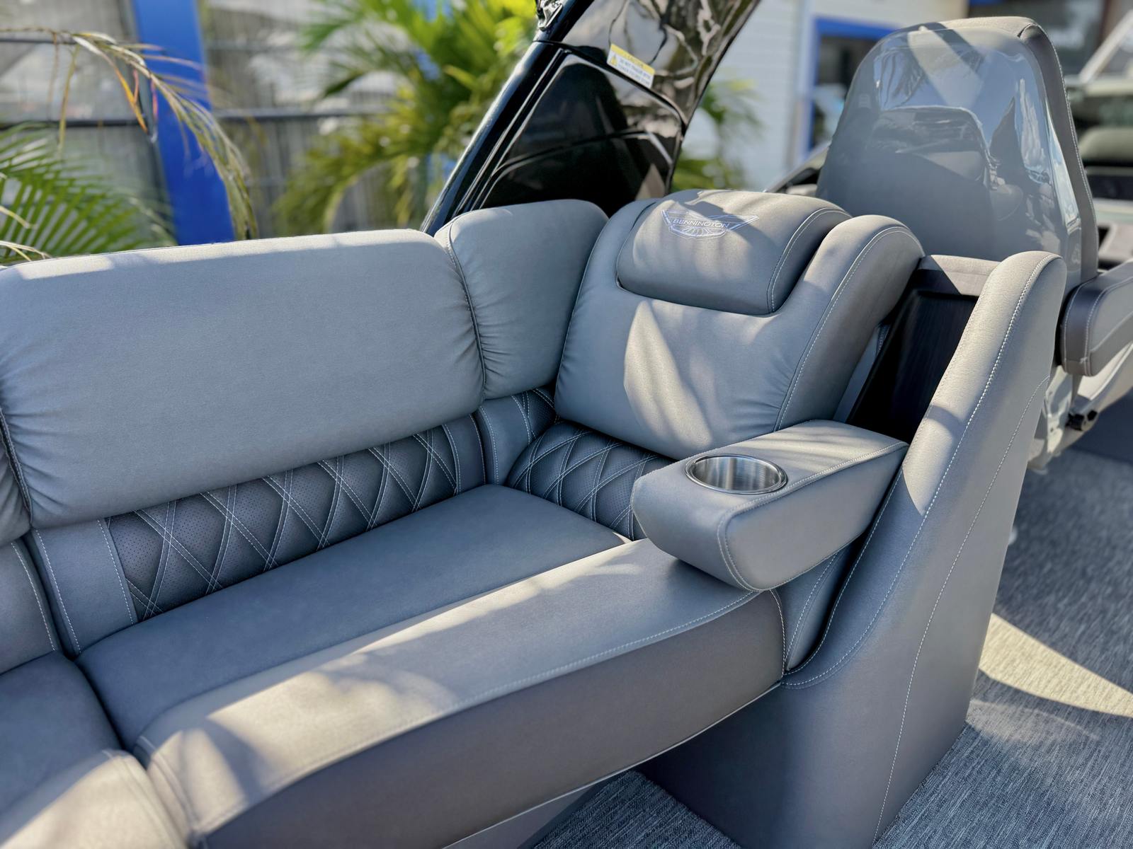 Owning the Bennington 27 QXFBWAX2 ESP pontoon boat means embracing a lifestyle of fun, relaxation, and social connection. The spacious deck layout provides ample room for guests to lounge, mingle, and soak up the sun. The advanced lighting systems create a festive atmosphere for evening cruises, while the premium audio setup ensures your favorite playlists sound incredible, whether you’re anchored in a quiet cove or hosting a lively party on the water.Comfort is paramount, with plush seating and thoughtful design elements that make every moment onboard enjoyable. The illuminated cupholders and accent lighting add a touch of luxury, while the high-performance engines guarantee thrilling rides and smooth cruising. This Bennington boat for sale is perfect for those who want to combine excitement with relaxation, offering the best of both worlds.