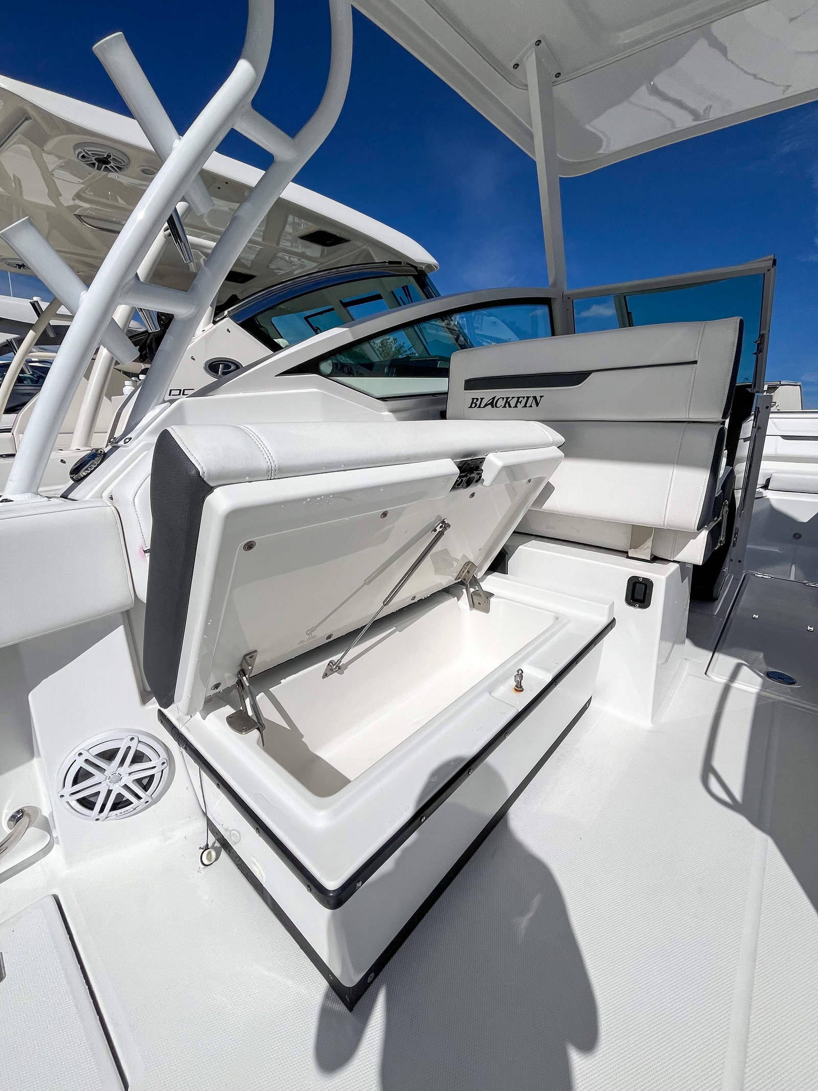 The 2022 Blackfin 272 DC is loaded with features that elevate your boating experience. Its dual console layout provides exceptional versatility, allowing you to seamlessly transition between fishing, entertaining, and relaxing. The spacious cockpit and bow seating areas offer plenty of room for guests to stretch out and enjoy the ride, while the ergonomic helm ensures comfortable control for the captain. Premium materials and finishes throughout the boat reflect Blackfin’s commitment to quality, creating an inviting atmosphere for all aboard. The 27-foot length of the Blackfin 272 DC strikes the perfect balance between ample space and easy handling. The boat’s thoughtful design includes generous storage compartments for gear, tackle, and personal items, keeping the deck clutter-free and organized. The dual console configuration also enhances safety and convenience, providing sheltered seating and protection from the elements when needed.