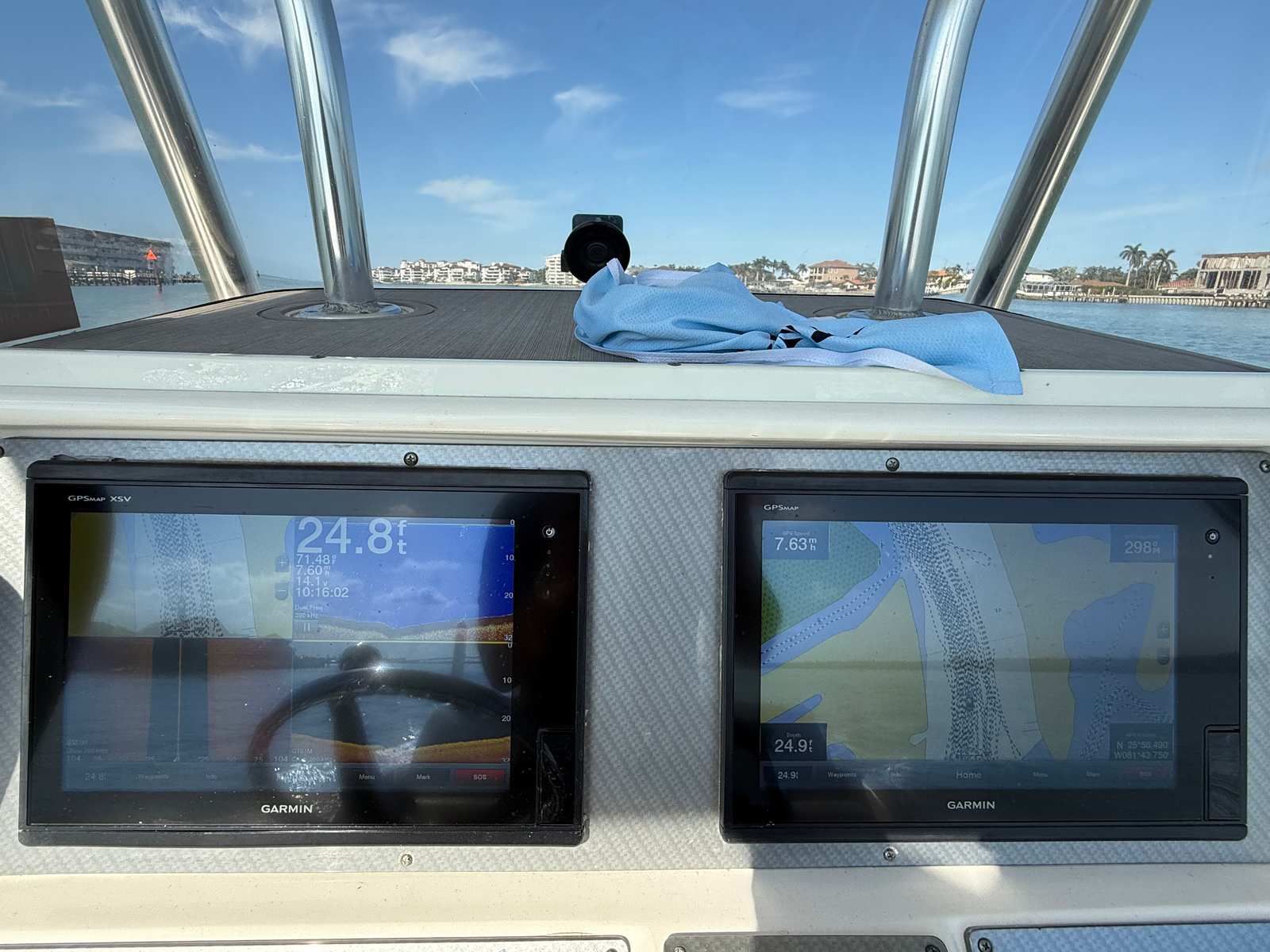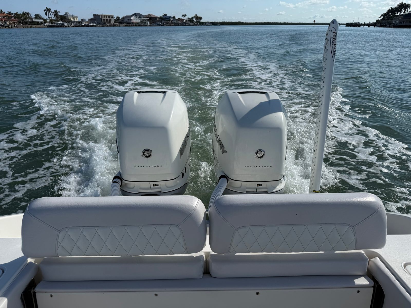 Powering this Blackwood 27 CC are twin engines, delivering a combined 700 horsepower. With only 612 engine hours, these motors offer plenty of life and robust performance for your next adventure. The dual-engine setup ensures smooth acceleration, responsive handling, and the ability to tackle a variety of water conditions with confidence. Whether you’re cruising along the coastline, heading offshore for a day of fishing, or simply enjoying a leisurely ride, the Blackwood 27 CC provides the speed and agility you need. The impressive horsepower translates to exhilarating rides and the capability to reach your favorite destinations quickly and efficiently.